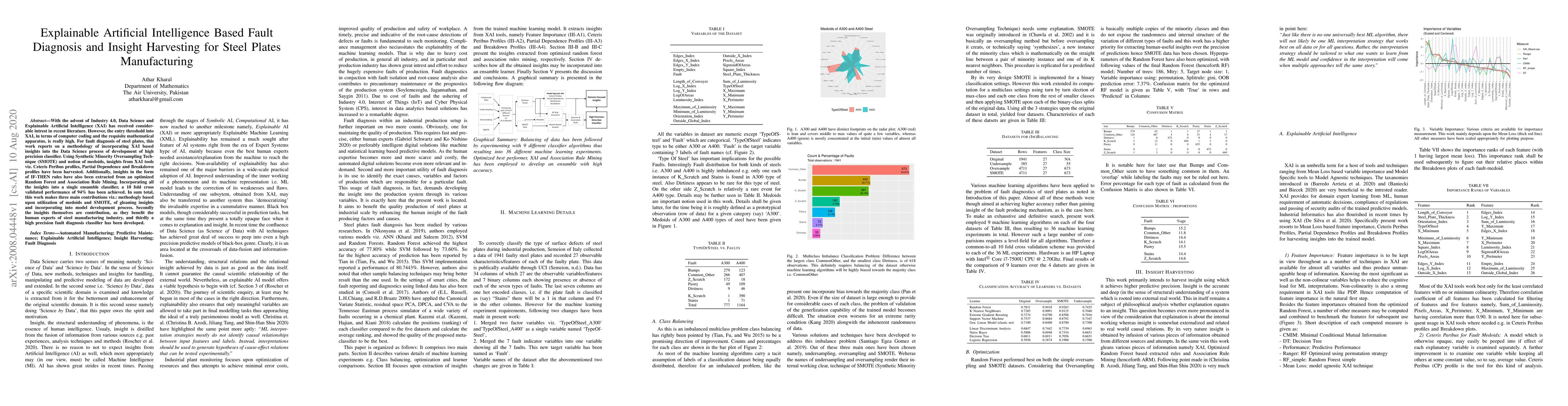 This paper develops an Explainable Artificial Intelligence (XAI) based methodology for fault diagnosis in steel plate manufacturing, achieving a 94% accuracy classifier. It utilizes techniques like SMOTE and medoids to enhance data and extract insights from XAI tools, contributing a high-precision diagnostic model and valuable insights for industry experts.