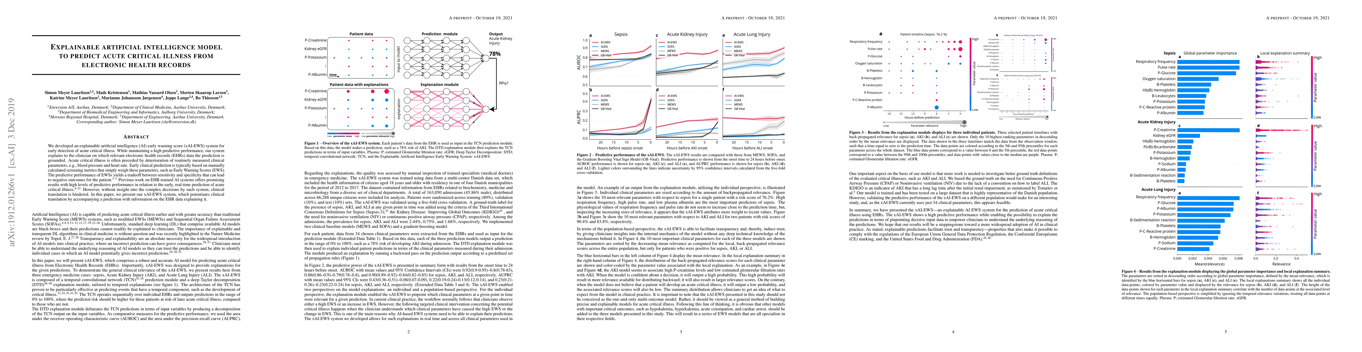 This paper introduces an explainable AI early warning score system (xAI-EWS) for early detection of acute critical illness using electronic health records, balancing predictive performance with transparency to clinicians on the relevant data influencing the prediction. The system aims to enhance clinical translation by providing insights into the decision-making process.
