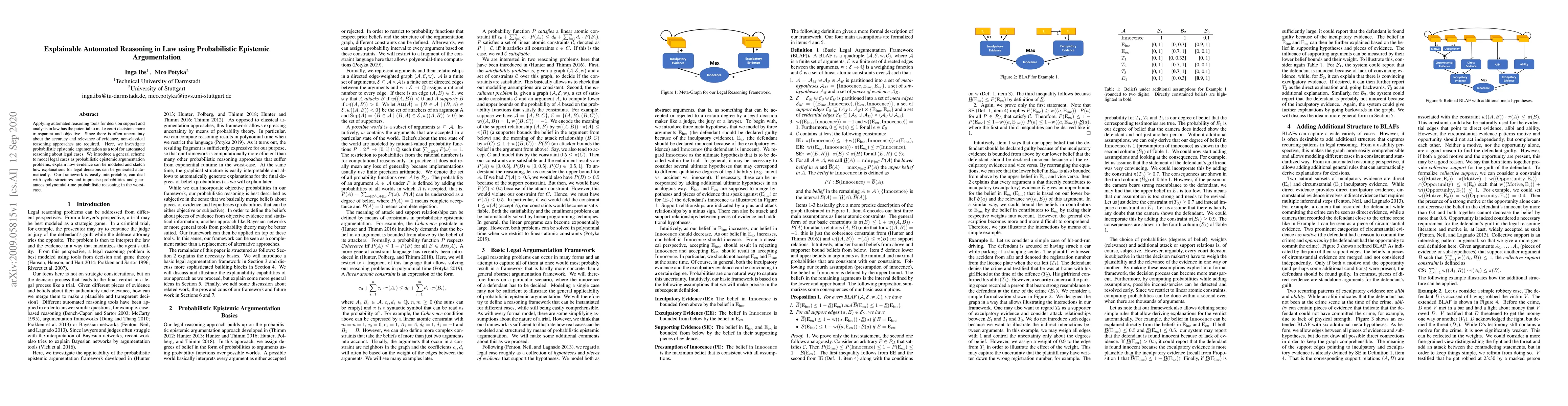 This paper explores using probabilistic epistemic argumentation for automated reasoning in law to enhance transparency and objectivity in court decisions. It introduces a framework to model legal cases, manage evidence, and generate explanations automatically, ensuring interpretability and polynomial-time reasoning.