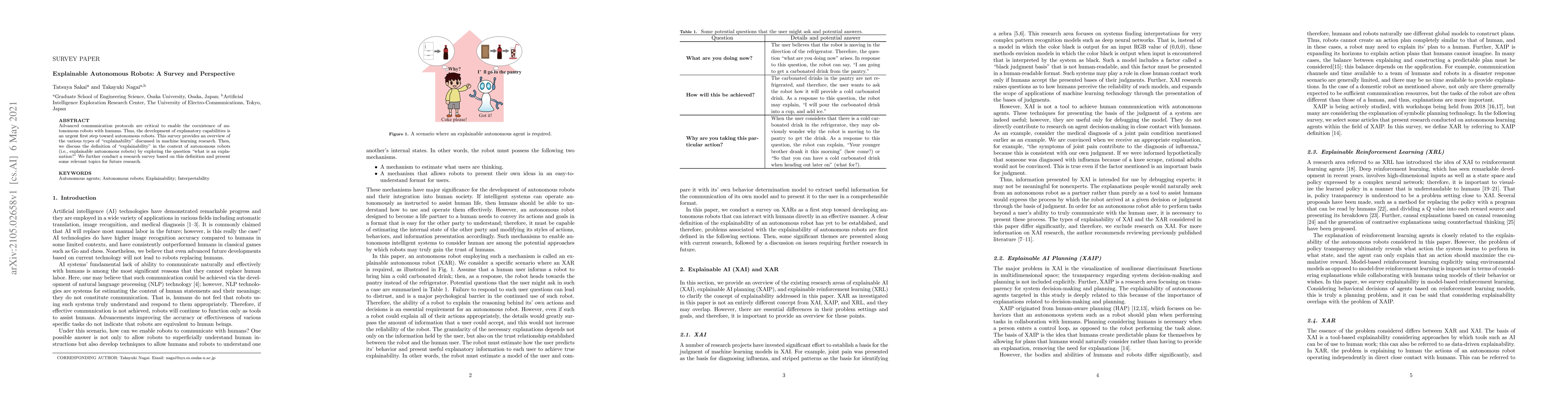 This paper surveys the concept of explainability in machine learning and defines it for autonomous robots, emphasizing the importance of communication protocols for human-robot coexistence. It outlines future research directions based on this definition.