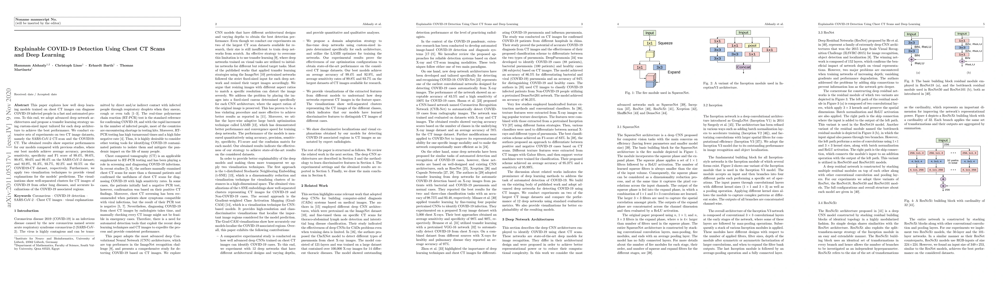 This paper presents deep learning models for fast and accurate COVID-19 detection using chest CT scans, achieving high accuracy and precision. Visualization techniques are used to explain model predictions, showing clear separation between COVID-19 and other lung diseases.