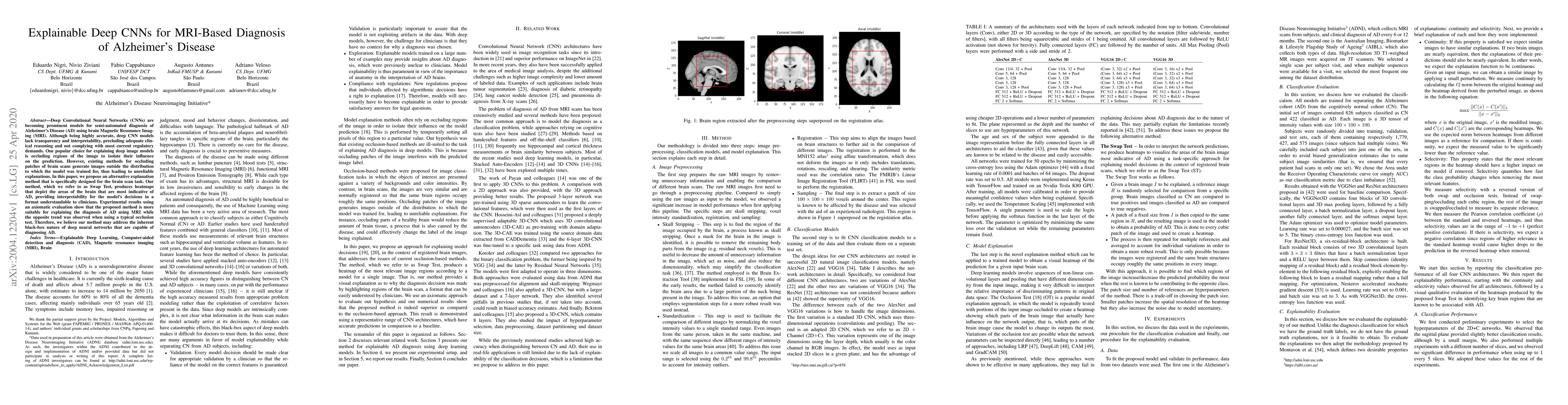 This paper proposes a Swap Test method for explaining deep CNNs used in MRI-based Alzheimer's Disease diagnosis, aiming to improve model interpretability. The method generates heatmaps highlighting significant brain areas, offering clinicians a transparent understanding of the model's decision-making process.