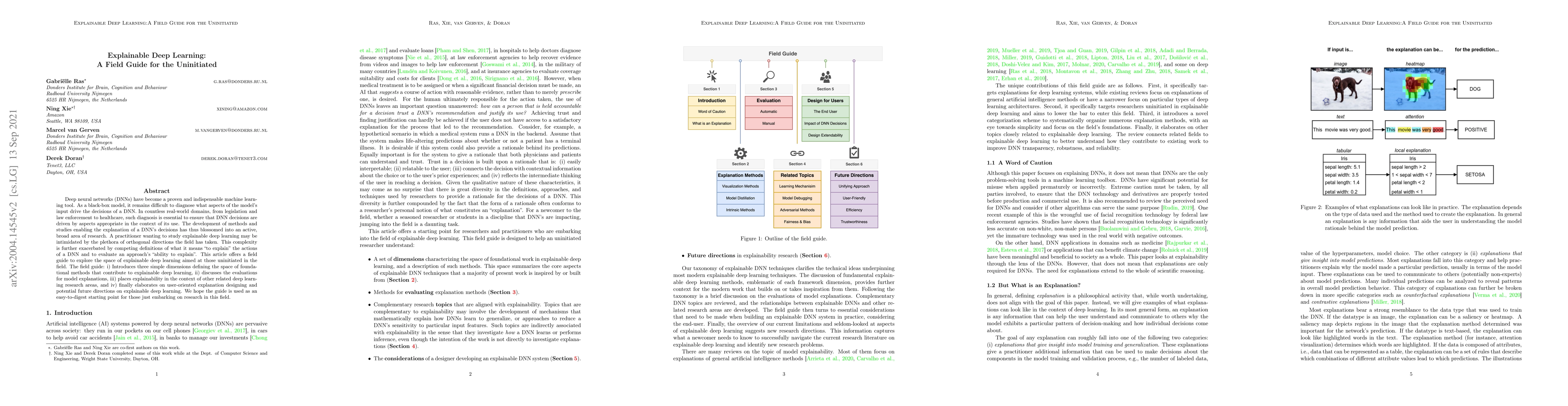 The paper presents a field guide for explainable deep learning, introducing three dimensions for foundational methods, discussing evaluations, placing explainability in context with other deep learning areas, and elaborating on user-oriented explanation design.