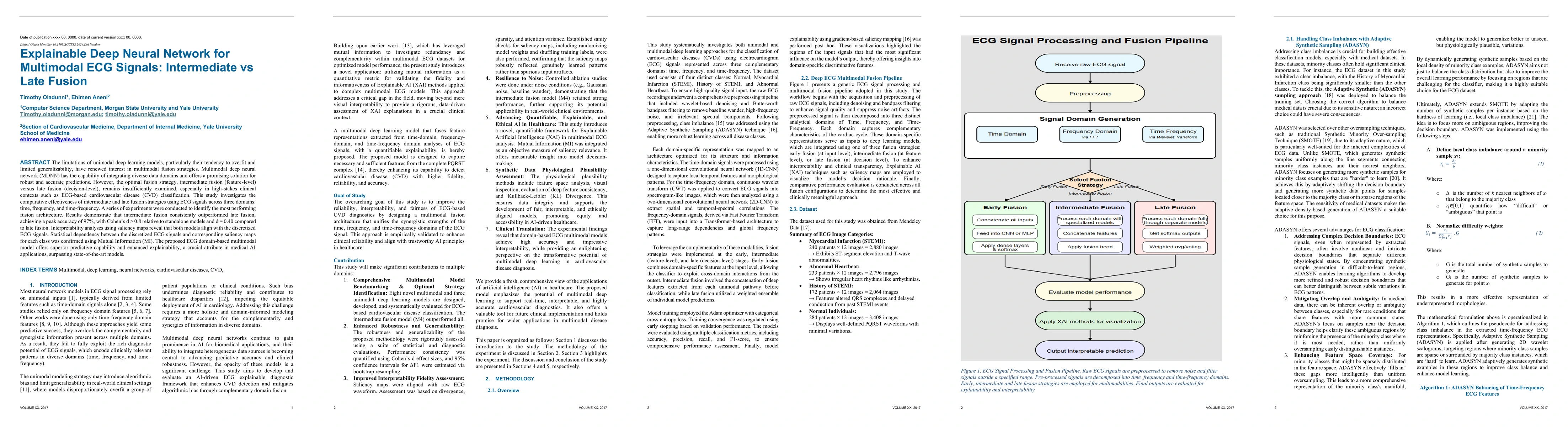The limitations of unimodal deep learning models, particularly their tendency to overfit and limited generalizability, have renewed interest in multimodal fusion strategies. Multimodal deep neural networks (MDNN) have the capability of integrating diverse data domains and offer a promising solution for robust and accurate predictions. However, the optimal fusion strategy, intermediate fusion (feature-level) versus late fusion (decision-level) remains insufficiently examined, especially in high-stakes clinical contexts such as ECG-based cardiovascular disease (CVD) classification. This study investigates the comparative effectiveness of intermediate and late fusion strategies using ECG signals across three domains: time, frequency, and time-frequency. A series of experiments were conducted to identify the highest-performing fusion architecture. Results demonstrate that intermediate fusion consistently outperformed late fusion, achieving a peak accuracy of 97 percent, with Cohen's d > 0.8 relative to standalone models and d = 0.40 compared to late fusion. Interpretability analyses using saliency maps reveal that both models align with the discretized ECG signals. Statistical dependency between the discretized ECG signals and corresponding saliency maps for each class was confirmed using Mutual Information (MI). The proposed ECG domain-based multimodal model offers superior predictive capability and enhanced explainability, crucial attributes in medical AI applications, surpassing state-of-the-art models.