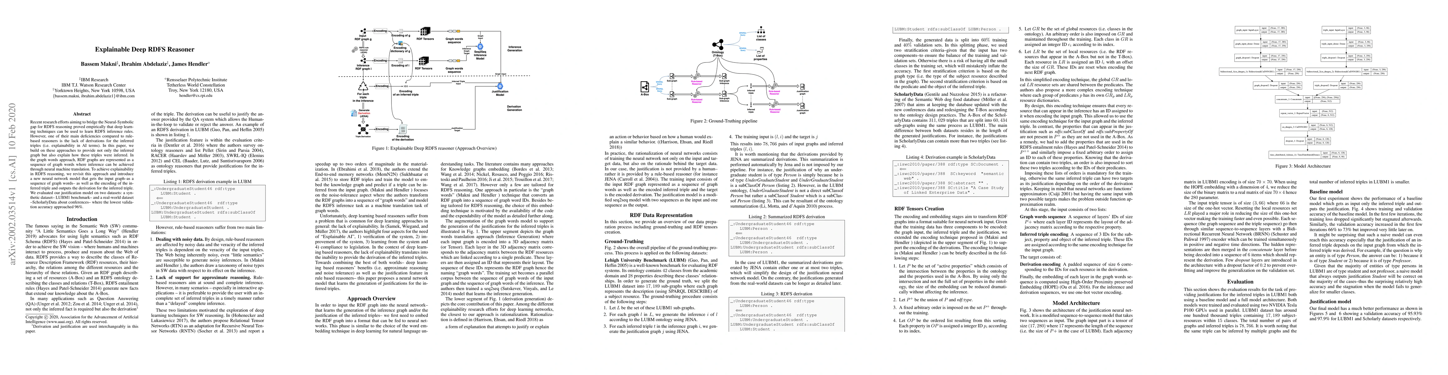 A new neural network model explains how inferred triples in RDFS reasoning are derived, improving explainability in AI terms. The model achieved high validation accuracy on two datasets, demonstrating its potential to bridge the Neural-Symbolic gap in RDFS reasoning.