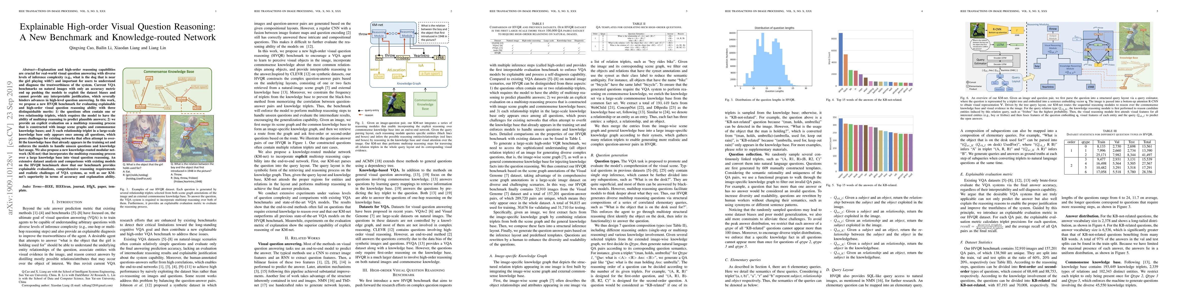 This paper introduces a new HVQR benchmark for evaluating explainable and high-order visual question reasoning, emphasizing multistep reasoning and knowledge base usage. It also proposes a knowledge-routed network (KM-net) that outperforms existing models in both accuracy and explanation ability.