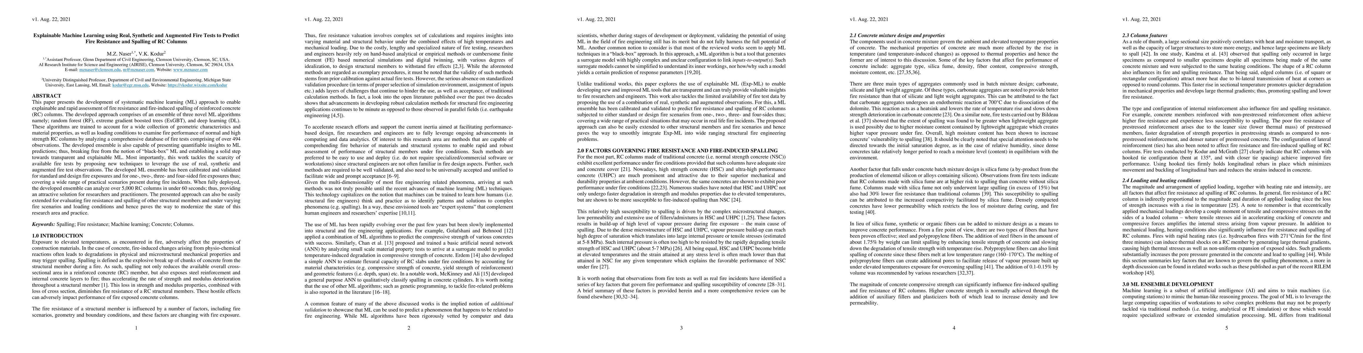 This paper develops an ensemble of machine learning algorithms to predict fire resistance and spalling in reinforced concrete columns, offering explainable insights and leveraging real, synthetic, and augmented fire test data. The approach can analyze over 5,000 columns in under 60 seconds, modernizing fire performance assessment.