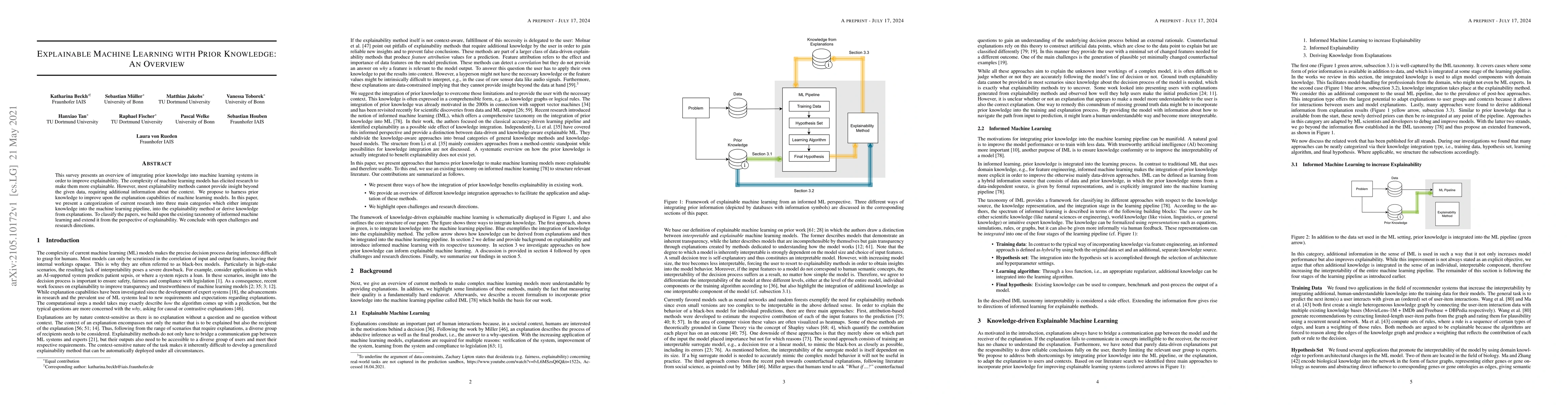 This paper surveys methods for integrating prior knowledge into machine learning to enhance explainability, categorizing current research into three main approaches: incorporating knowledge into the pipeline, into the explainability method, or deriving knowledge from explanations. It extends the existing taxonomy and outlines open challenges and future research directions.