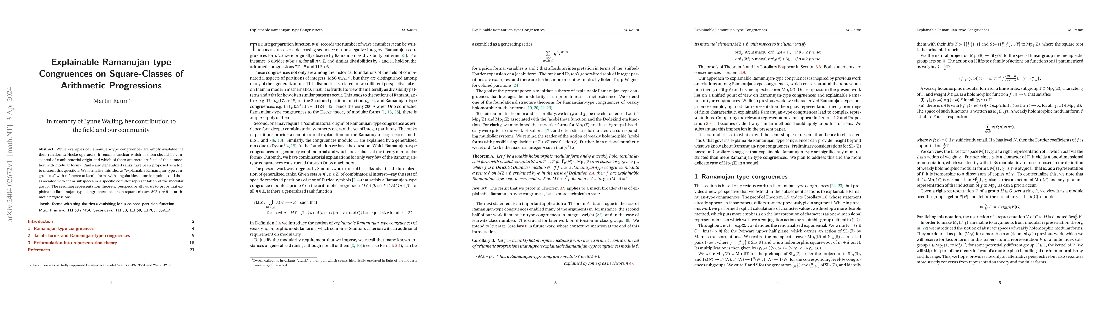 Summary: This paper formalizes "explainable Ramanujan-type congruences" through a representation-theoretic perspective involving Jacobi forms, demonstrating their occurrence on specific arithmetic progressions' square-classes. It uses ranks and generalized ranks to distinguish these congruences from those arising purely from modular forms.