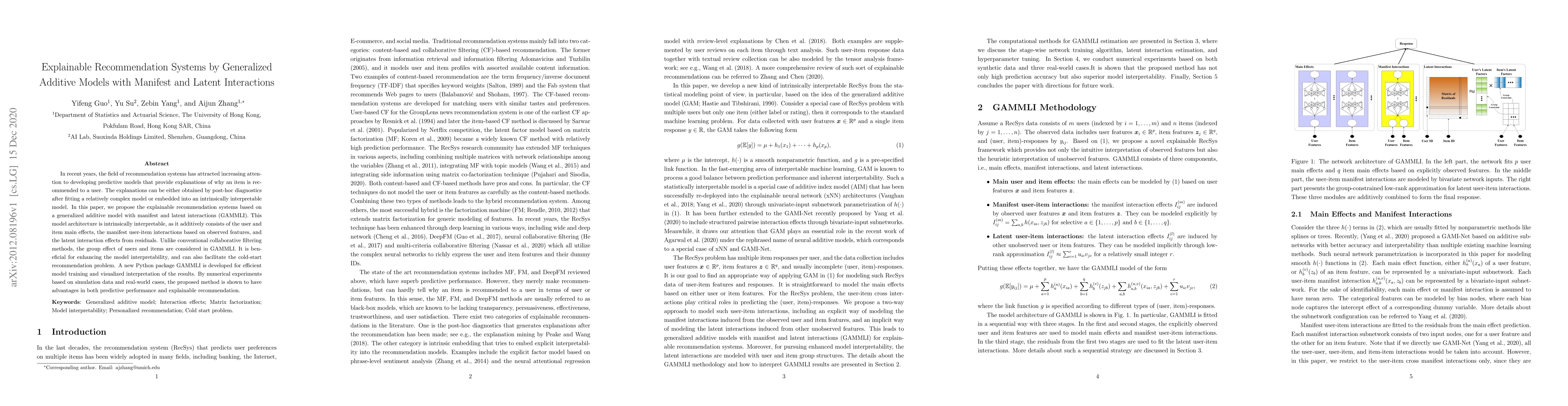 Researchers propose a new method for explainable recommendation systems using a generalized additive model that incorporates both manifest and latent interactions, showing improved predictive performance and interpretability.