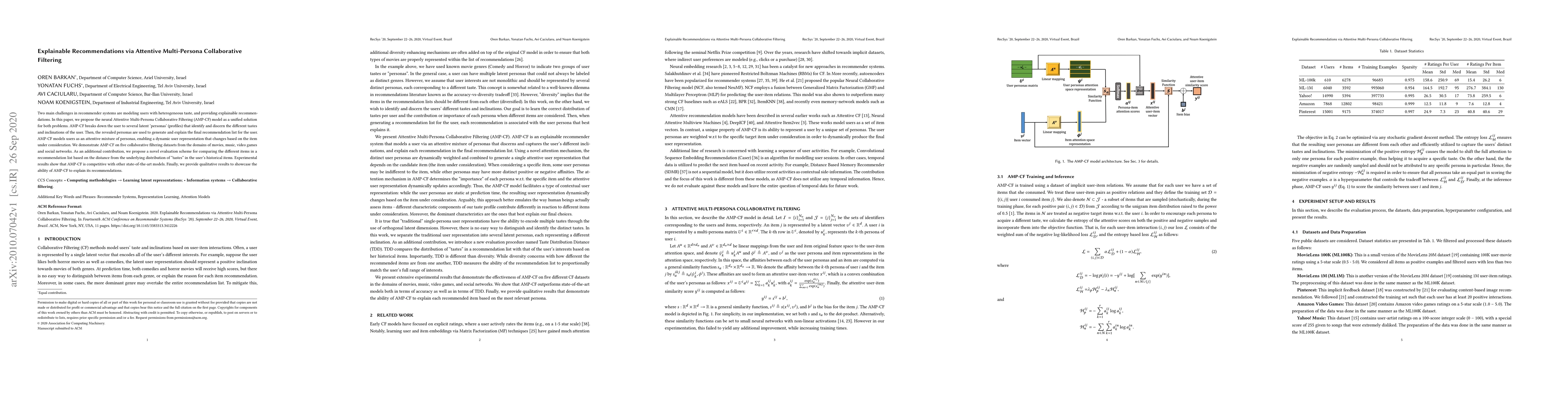 The paper proposes the AMP-CF model to address challenges in recommender systems by modeling users through multiple latent personas and providing explainable recommendations. AMP-CF dynamically adjusts user representation based on item context and demonstrates competitive performance across various datasets.
