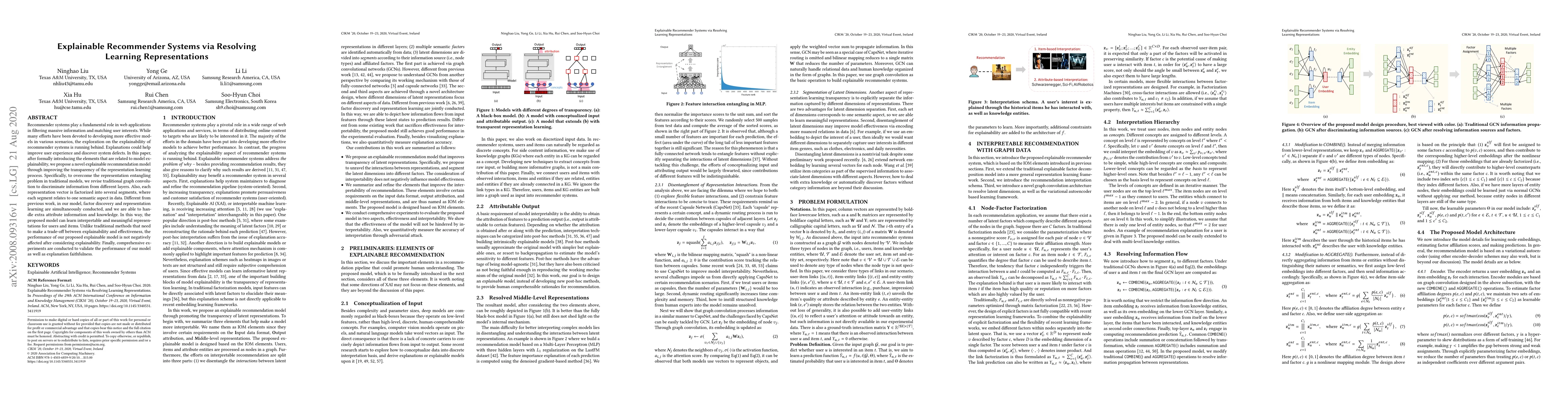 This paper proposes an explainable recommender system that improves transparency in representation learning, addressing the representation entangling problem by revising graph convolution and segmenting representation vectors into semantic aspects. Unlike traditional models, the new approach simultaneously conducts factor discovery and representation learning without sacrificing performance, validated through comprehensive experiments.