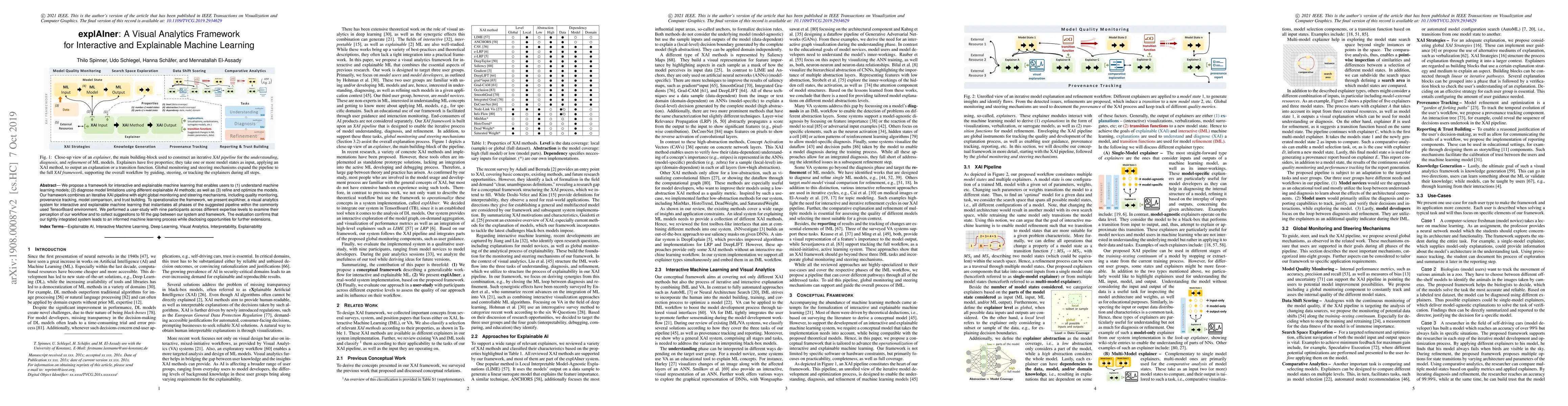 The explAIner framework offers an interactive and explainable machine learning system that helps users understand, diagnose, and optimize models through visual analytics. The system integrates eight monitoring mechanisms within TensorBoard, and a user study indicates it enhances informed machine learning processes, though further enhancements are suggested.