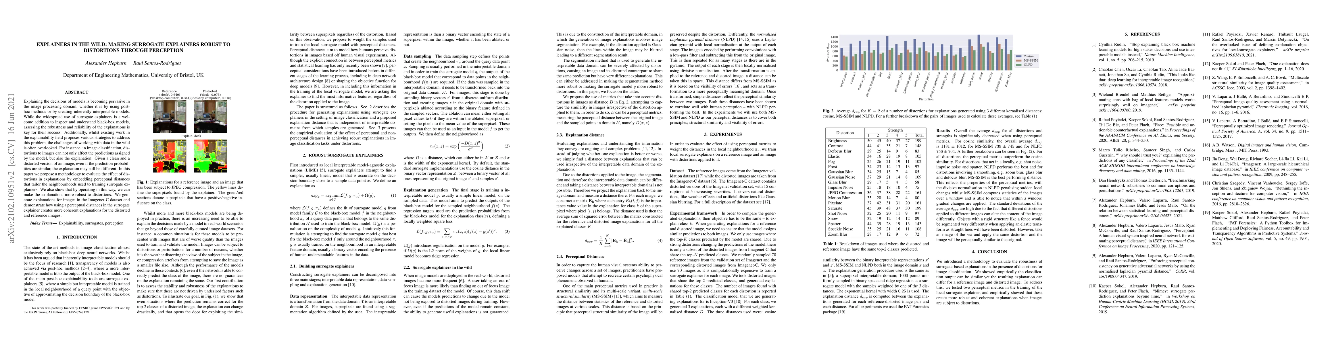 Explaining the decisions of models is becoming pervasive in the image processing domain, whether it is by using post-hoc methods or by creating inherently interpretable models. While the widespread use of surrogate explainers is a welcome addition to inspect and understand black-box models, assessing the robustness and reliability of the explanations is key for their success. Additionally, whilst existing work in the explainability field proposes various strategies to address this problem, the challenges of working with data in the wild is often overlooked. For instance, in image classification, distortions to images can not only affect the predictions assigned by the model, but also the explanation. Given a clean and a distorted version of an image, even if the prediction probabilities are similar, the explanation may still be different. In this paper we propose a methodology to evaluate the effect of distortions in explanations by embedding perceptual distances that tailor the neighbourhoods used to training surrogate explainers. We also show that by operating in this way, we can make the explanations more robust to distortions. We generate explanations for images in the Imagenet-C dataset and demonstrate how using a perceptual distances in the surrogate explainer creates more coherent explanations for the distorted and reference images.