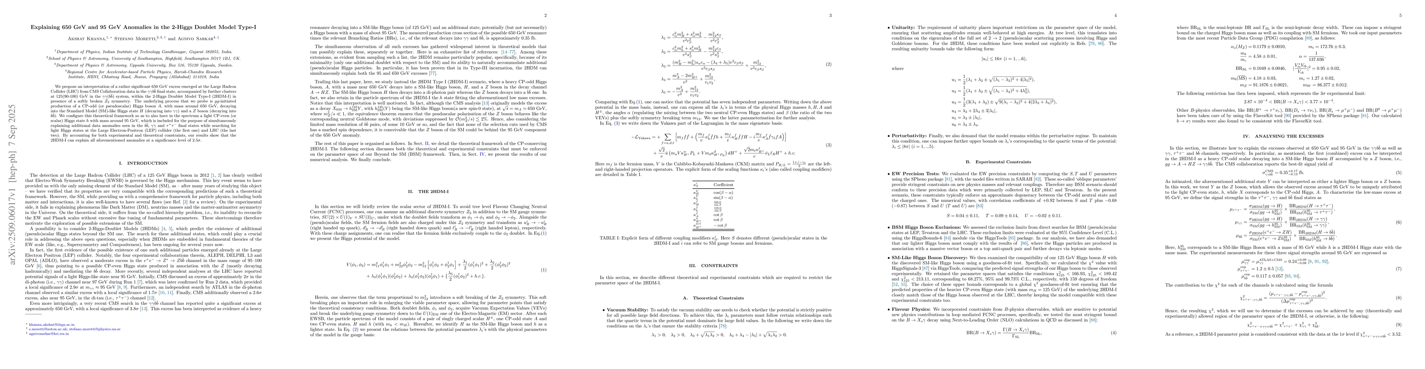 We propose an interpretation of a rather significant 650 GeV excess emerged at the Large Hadron Collider (LHC) from CMS Collaboration data in the $\gamma\gamma b\bar b$ final state, accompanied by further clusters at 125(90-100) GeV in the $\gamma\gamma(b\bar b)$ system, within the 2-Higgs Doublet Model Type-I (2HDM-I) in presence of a softly broken $\mathcal{Z}_{2}$ symmetry. The underlying process that we probe is $gg$-initiated production of a CP-odd (or pseudoscalar) Higgs boson $A$, with mass around 650 GeV, decaying into the Standard Model (SM)-like Higgs state $H$ (decaying into $\gamma\gamma$) and a $Z$ boson (decaying into $b\bar b$). We configure this theoretical framework so as to also have in the spectrum a light CP-even (or scalar) Higgs state $h$ with mass around 95 GeV, which is included for the purpose of simultaneously explaining additional data anomalies seen in the $b\bar b$, $\gamma\gamma$ and $\tau^+\tau^-$ final states while searching for light Higgs states at the Large Electron-Positron (LEP) collider (the first one) and LHC (the last two). By accounting for both experimental and theoretical constraints, our results show that the 2HDM-I can explain all aforementioned anomalies at a significance level of $2.5 \sigma$.