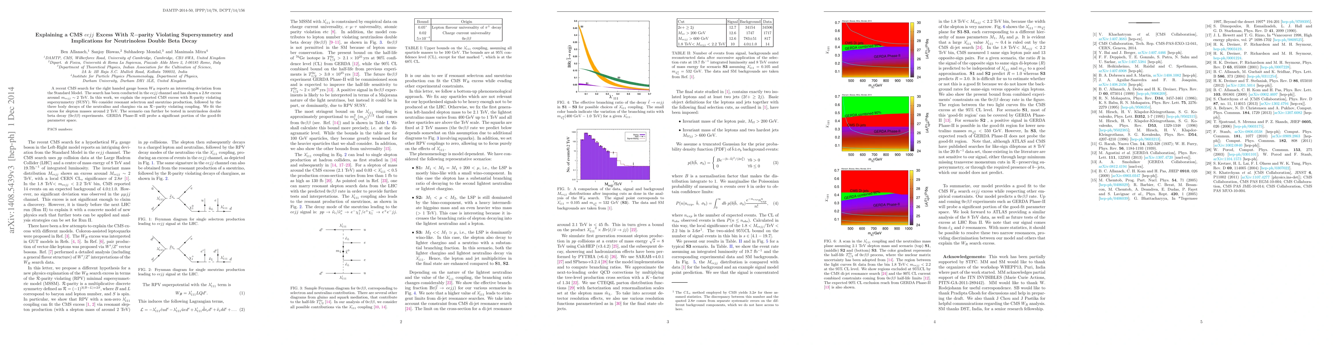 This paper explains a CMS $eejj$ excess observed in searches for the right-handed gauge boson $W_R$ using R-parity violating supersymmetry, involving resonant selectron and sneutrino production. The proposed model can also be tested in neutrinoless double beta decay experiments, with GERDA Phase-II potentially probing a significant portion of the parameter space.