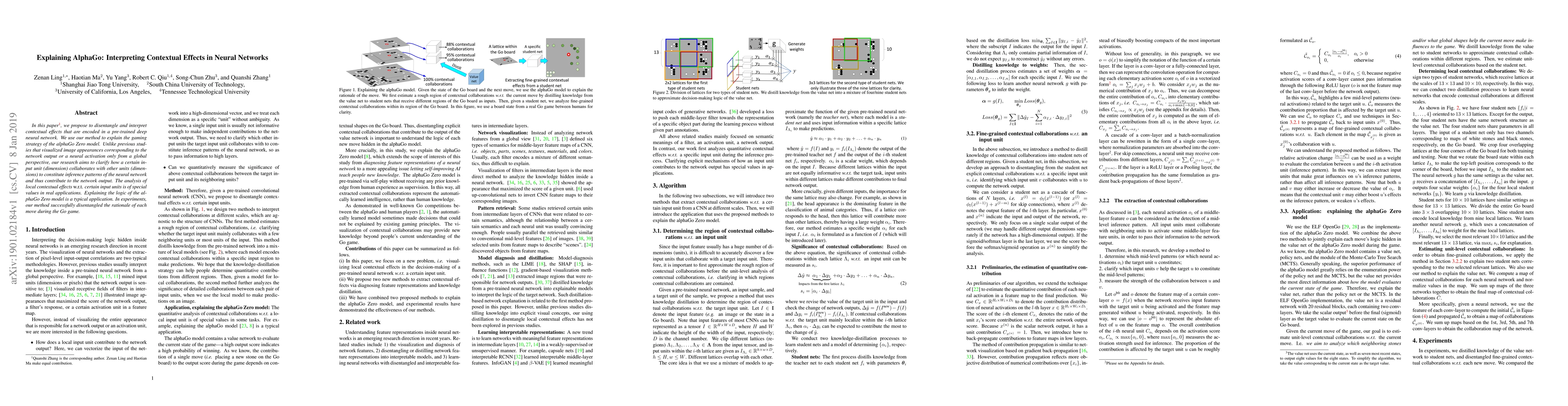 This paper proposes a method to interpret contextual effects in neural networks, successfully disentangling the rationale of each move made by the alphaGo Zero model during the Go game.