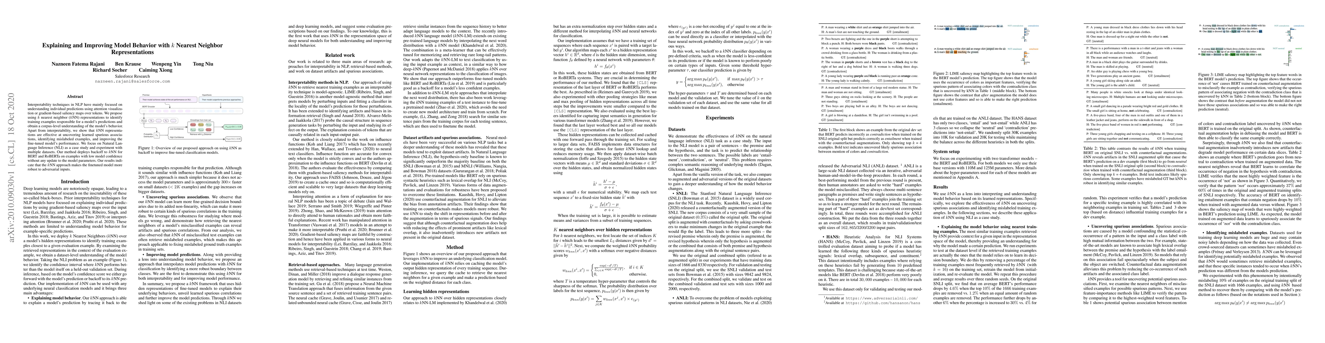 A new method uses k nearest neighbor representations to improve model behavior in NLP, revealing learned spurious associations and mislabeled examples, leading to improved performance and robustness against adversarial inputs.