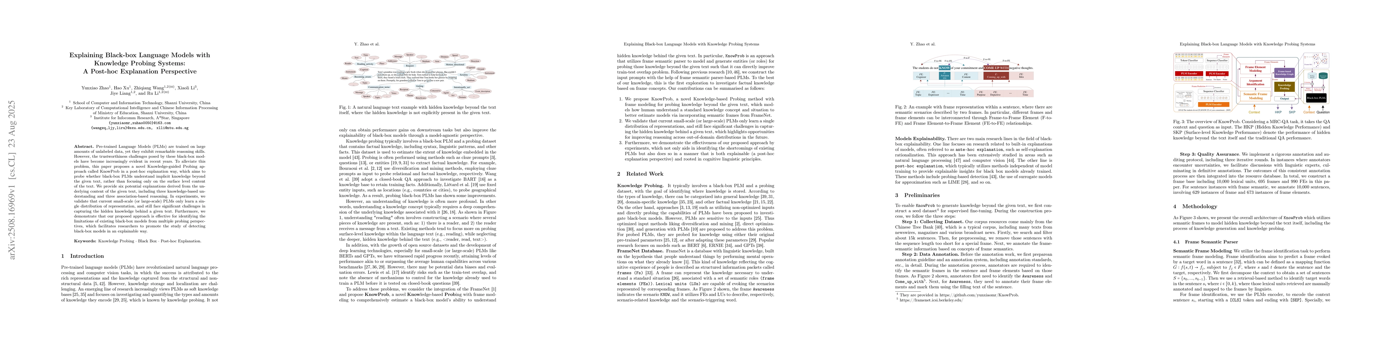 Pre-trained Language Models (PLMs) are trained on large amounts of unlabeled data, yet they exhibit remarkable reasoning skills. However, the trustworthiness challenges posed by these black-box models have become increasingly evident in recent years. To alleviate this problem, this paper proposes a novel Knowledge-guided Probing approach called KnowProb in a post-hoc explanation way, which aims to probe whether black-box PLMs understand implicit knowledge beyond the given text, rather than focusing only on the surface level content of the text. We provide six potential explanations derived from the underlying content of the given text, including three knowledge-based understanding and three association-based reasoning. In experiments, we validate that current small-scale (or large-scale) PLMs only learn a single distribution of representation, and still face significant challenges in capturing the hidden knowledge behind a given text. Furthermore, we demonstrate that our proposed approach is effective for identifying the limitations of existing black-box models from multiple probing perspectives, which facilitates researchers to promote the study of detecting black-box models in an explainable way.