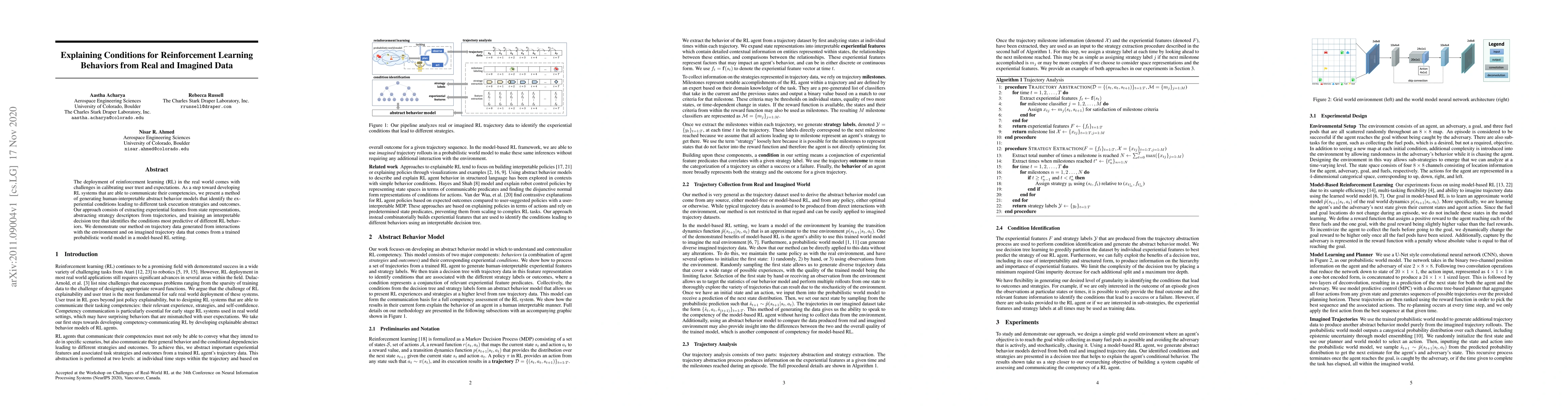 This paper proposes a method to generate human-interpretable models for reinforcement learning behaviors by identifying conditions leading to different strategies and outcomes. It uses extracted features and an interpretable decision tree to analyze real and imagined data, aiming to enhance user trust in RL systems.