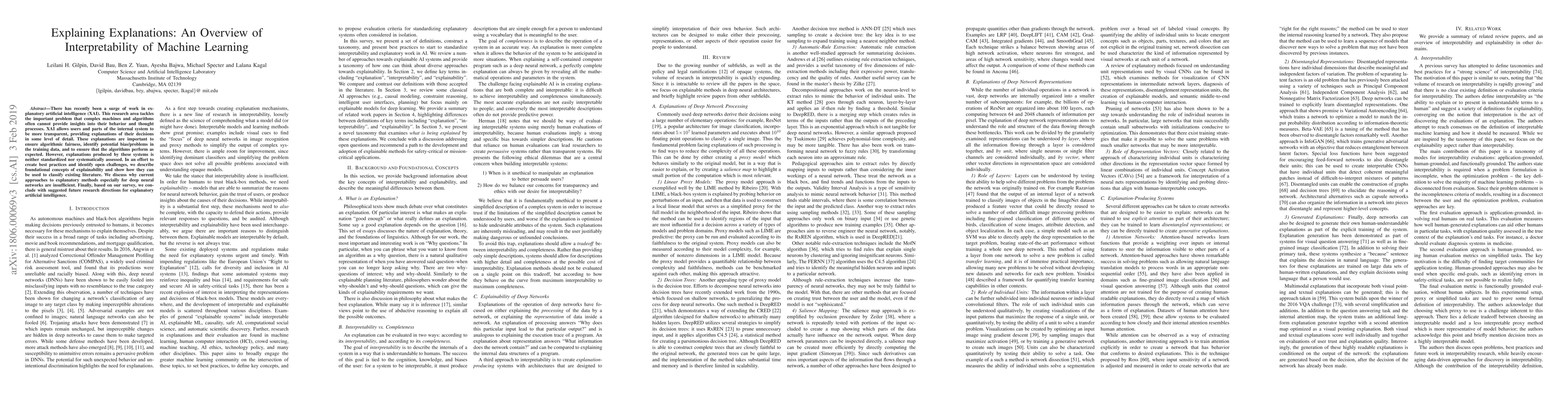 There has recently been a surge of work in explanatory artificial intelligence (XAI). This research area tackles the important problem that complex machines and algorithms often cannot provide insights into their behavior and thought processes. XAI allows users and parts of the internal system to be more transparent, providing explanations of their decisions in some level of detail. These explanations are important to ensure algorithmic fairness, identify potential bias/problems in the training data, and to ensure that the algorithms perform as expected. However, explanations produced by these systems is neither standardized nor systematically assessed. In an effort to create best practices and identify open challenges, we provide our definition of explainability and show how it can be used to classify existing literature. We discuss why current approaches to explanatory methods especially for deep neural networks are insufficient. Finally, based on our survey, we conclude with suggested future research directions for explanatory artificial intelligence.