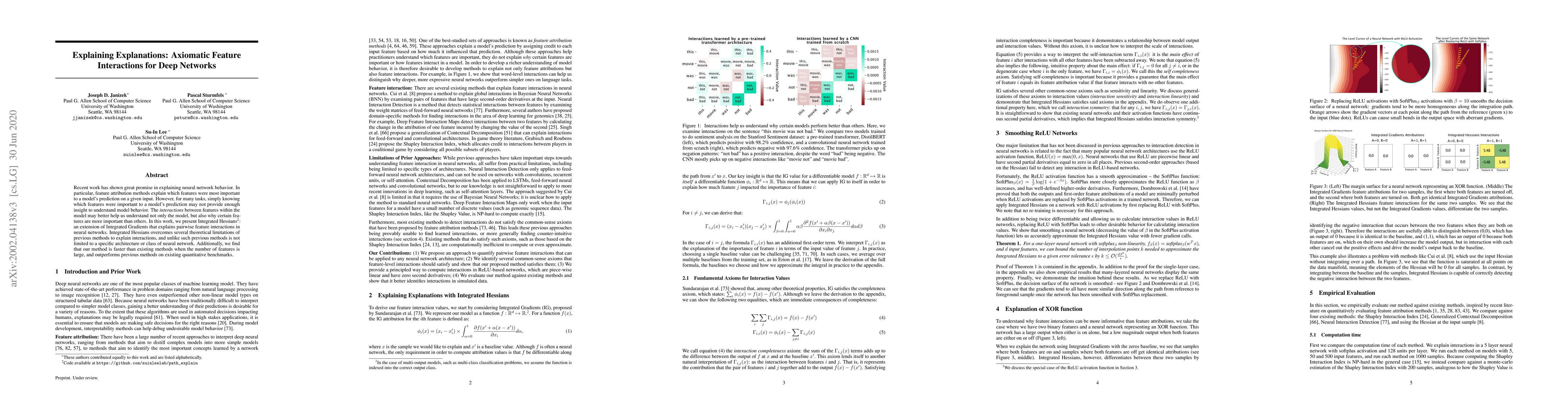 Recent work has shown great promise in explaining neural network behavior. In particular, feature attribution methods explain which features were most important to a model's prediction on a given input. However, for many tasks, simply knowing which features were important to a model's prediction may not provide enough insight to understand model behavior. The interactions between features within the model may better help us understand not only the model, but also why certain features are more important than others. In this work, we present Integrated Hessians, an extension of Integrated Gradients that explains pairwise feature interactions in neural networks. Integrated Hessians overcomes several theoretical limitations of previous methods to explain interactions, and unlike such previous methods is not limited to a specific architecture or class of neural network. Additionally, we find that our method is faster than existing methods when the number of features is large, and outperforms previous methods on existing quantitative benchmarks. Code available at https://github.com/suinleelab/path_explain