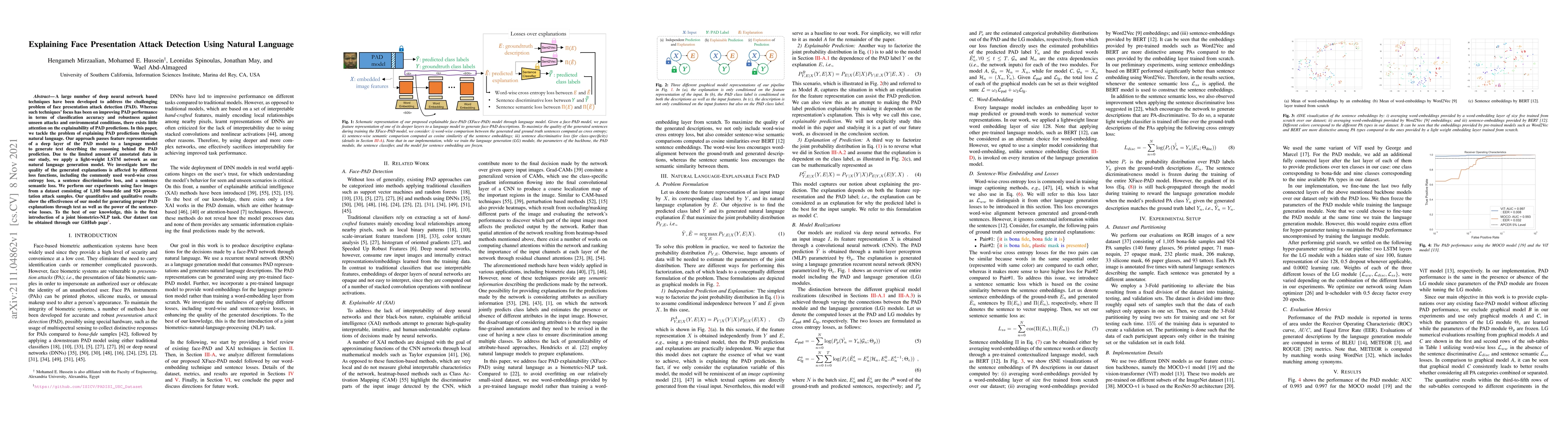 Researchers developed a method to explain face presentation attack detection (PAD) predictions using natural language, generating text that describes the reasoning behind the prediction. The approach showed effectiveness in providing proper explanations for PAD decisions.