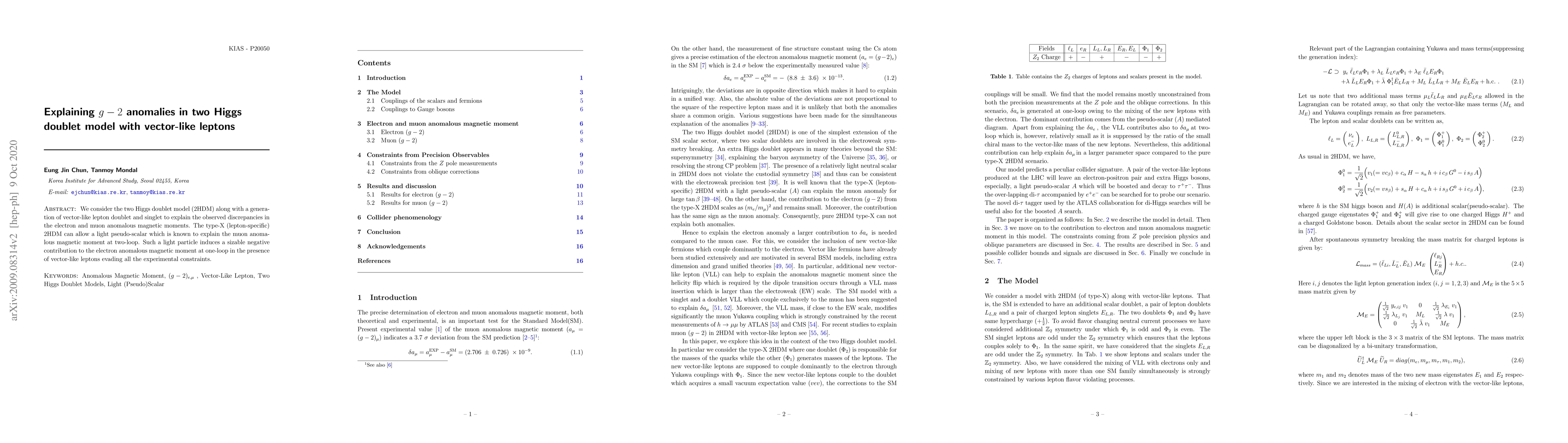 This paper explores a two Higgs doublet model (2HDM) augmented with vector-like leptons to address discrepancies in the anomalous magnetic moments of electrons and muons. The type-X 2HDM, with a light pseudo-scalar, and vector-like leptons provide a mechanism to explain these anomalies while remaining consistent with experimental constraints.