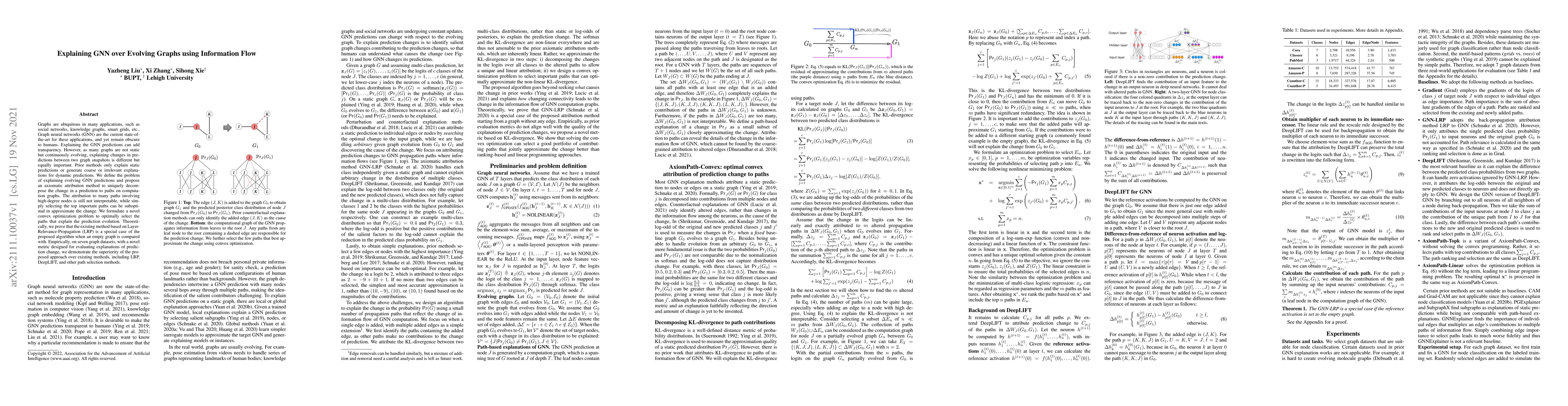 Graphs are ubiquitous in many applications, such as social networks, knowledge graphs, smart grids, etc.. Graph neural networks (GNN) are the current state-of-the-art for these applications, and yet remain obscure to humans. Explaining the GNN predictions can add transparency. However, as many graphs are not static but continuously evolving, explaining changes in predictions between two graph snapshots is different but equally important. Prior methods only explain static predictions or generate coarse or irrelevant explanations for dynamic predictions. We define the problem of explaining evolving GNN predictions and propose an axiomatic attribution method to uniquely decompose the change in a prediction to paths on computation graphs. The attribution to many paths involving high-degree nodes is still not interpretable, while simply selecting the top important paths can be suboptimal in approximating the change. We formulate a novel convex optimization problem to optimally select the paths that explain the prediction evolution. Theoretically, we prove that the existing method based on Layer-Relevance-Propagation (LRP) is a special case of the proposed algorithm when an empty graph is compared with. Empirically, on seven graph datasets, with a novel metric designed for evaluating explanations of prediction change, we demonstrate the superiority of the proposed approach over existing methods, including LRP, DeepLIFT, and other path selection methods.