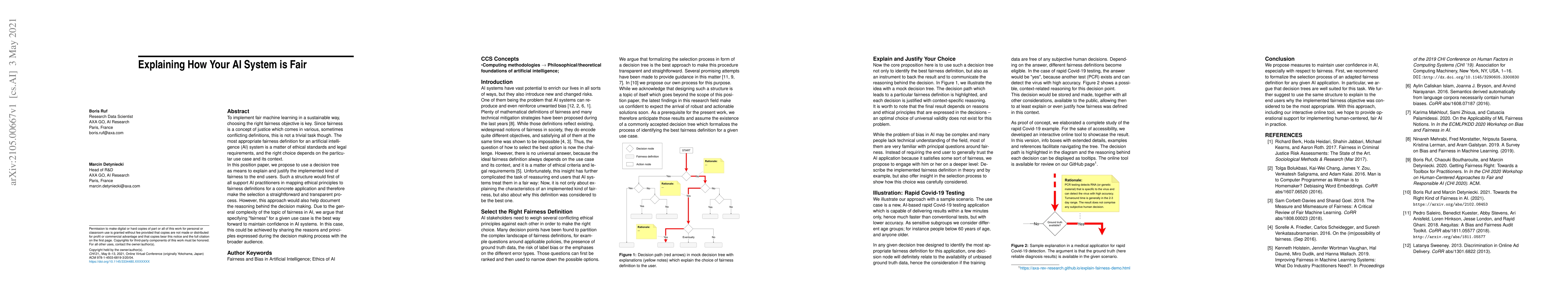 A research paper proposes using decision trees to explain fairness in AI systems, aiming to support transparent decision-making and document ethical principles behind the choice of fairness objectives.