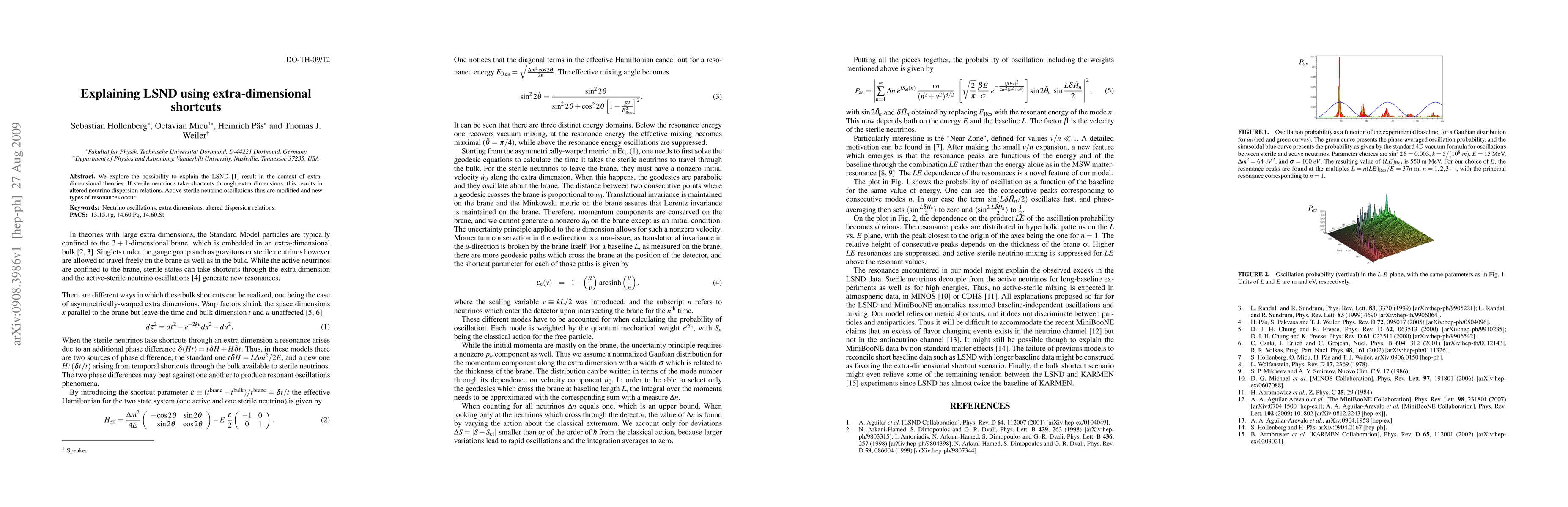 Summary: The paper investigates the possibility of explaining the LSND neutrino oscillation results through extra-dimensional theories, suggesting that sterile neutrinos may use shortcuts in extra dimensions, leading to modified dispersion relations and new oscillation resonances.