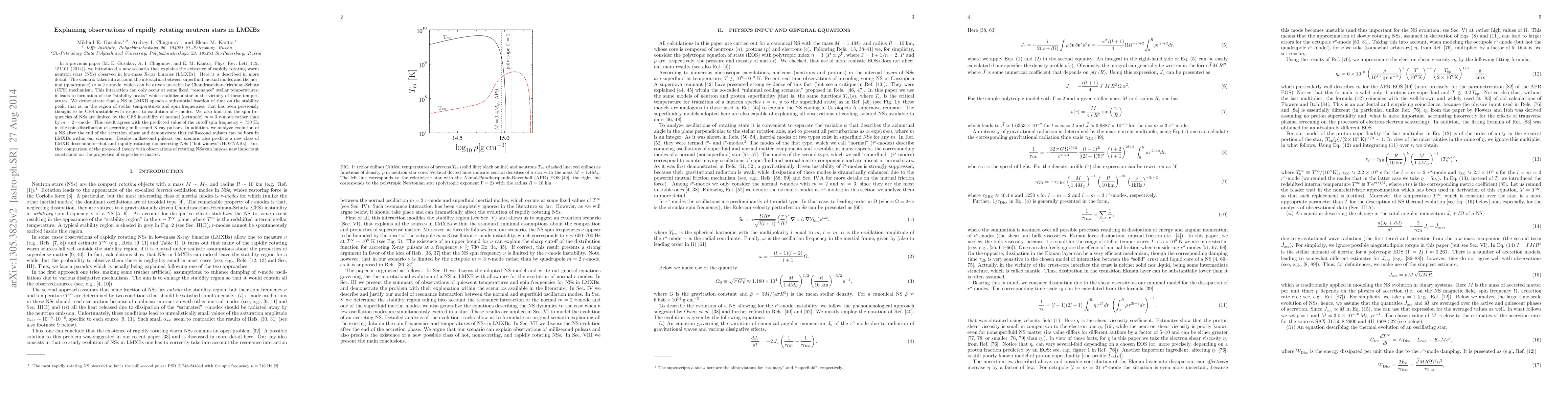 In a previous paper [M. E. Gusakov, A. I. Chugunov, and E. M. Kantor, Phys. Rev. Lett. 112, 151101 (2014)], we introduced a new scenario that explains the existence of rapidly rotating warm neutron stars (NSs) observed in low-mass X-ray binaries (LMXBs). Here it is described in more detail. The scenario takes into account the interaction between superfluid inertial modes and the normal (quadrupole) $m=2$ $r$-mode, which can be driven unstable by Chandrasekhar-Friedman-Schutz (CFS) mechanism. This interaction can only occur at some fixed "resonance" stellar temperatures; it leads to formation of the "stability peaks" which stabilize a star in the vicinity of these temperatures. We demonstrate that a NS in LMXB spends a substantial fraction of time on the stability peak, that is, in the region of stellar temperatures and spin frequencies, that has been previously thought to be CFS unstable with respect to excitation of $r$-modes. We also find that the spin frequencies of NSs are limited by the CFS instability of normal (octupole) $m=3$ $r$-mode rather than by $m=2$ $r$-mode. This result agrees with the predicted value of the cutoff spin frequency $\sim 730$ Hz in the spin distribution of accreting millisecond X-ray pulsars. In addition, we analyze evolution of a NS after the end of the accretion phase and demonstrate that millisecond pulsars can be born in LMXBs within our scenario. Besides millisecond pulsars, our scenario also predicts a new class of LMXB descendants - hot and rapidly rotating nonaccreting NSs ("hot widows"/HOFNARs). Further comparison of the proposed theory with observations of rotating NSs can impose new important constraints on the properties of superdense matter.