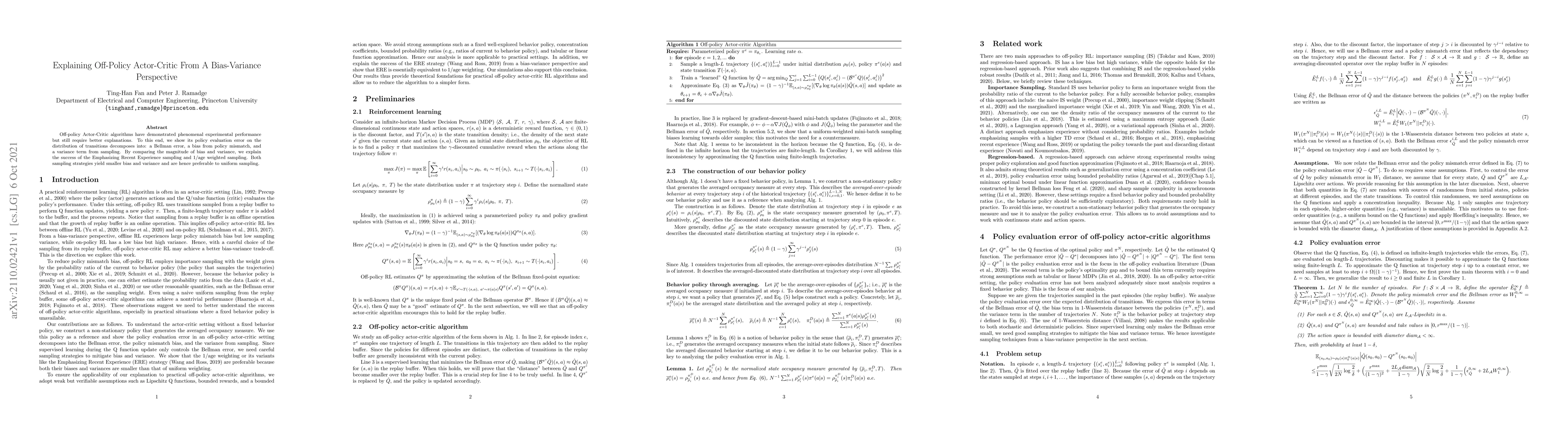 Off-policy Actor-Critic algorithms have demonstrated phenomenal experimental performance but still require better explanations. To this end, we show its policy evaluation error on the distribution of transitions decomposes into: a Bellman error, a bias from policy mismatch, and a variance term from sampling. By comparing the magnitude of bias and variance, we explain the success of the Emphasizing Recent Experience sampling and 1/age weighted sampling. Both sampling strategies yield smaller bias and variance and are hence preferable to uniform sampling.