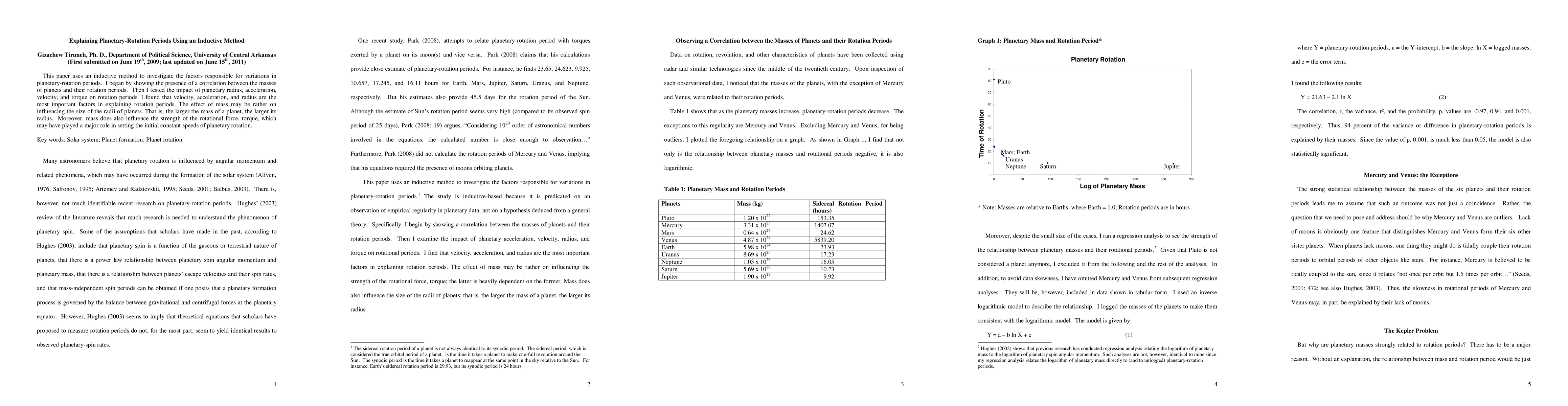 This paper employs an inductive method to explore the factors influencing planetary rotation periods, identifying velocity, acceleration, and radius as the most significant contributors. It also suggests that mass primarily affects planetary size and the initial rotational force, torque, rather than directly impacting rotation periods.