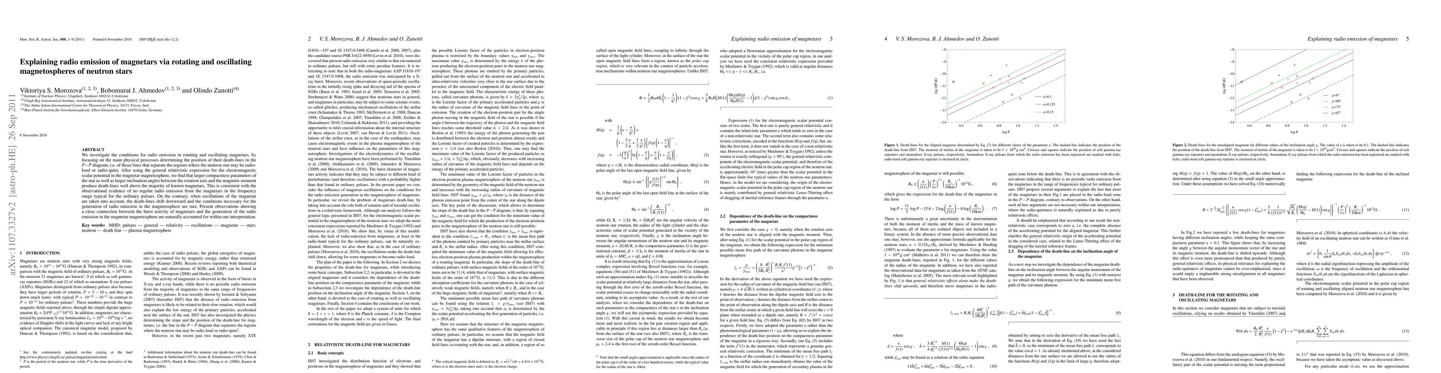 We investigate the conditions for radio emission in rotating and oscillating magnetars, by focusing on the main physical processes determining the position of their death-lines in the P-\dot{P} diagram, i.e. of those lines that separate the regions where the neutron star may be radio-loud or radio-quiet. After using the general relativistic expression for the electromagnetic scalar potential in the magnetar magnetosphere, we find that larger compactness parameters of the star as well as larger inclination angles between the rotation axis and the magnetic moment produce death-lines well above the majority of known magnetars. This is consistent with the observational evidence of no regular radio emission from the magnetars in the frequency range typical for the ordinary pulsars. On the contrary, when oscillations of the magnetar are taken into account, the death-lines shift downward and the conditions necessary for the generation of radio emission in the magnetosphere are met. Present observations showing a close connection between the burst activity of magnetars and the generation of the radio emission in the magnetar magnetosphere are naturally accounted for within our interpretation.