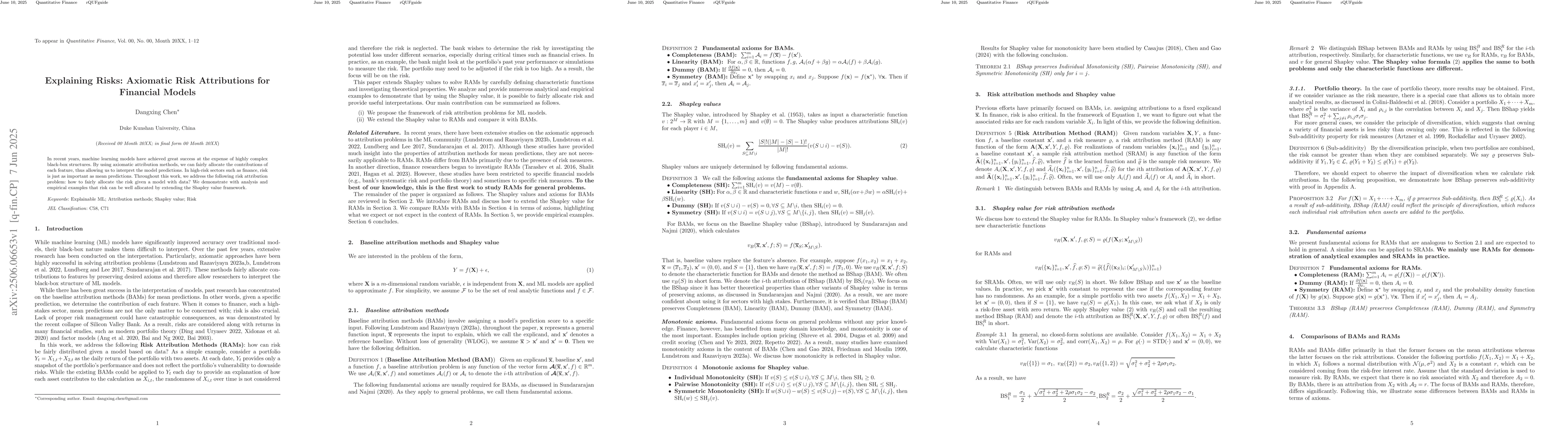 In recent years, machine learning models have achieved great success at the expense of highly complex black-box structures. By using axiomatic attribution methods, we can fairly allocate the contributions of each feature, thus allowing us to interpret the model predictions. In high-risk sectors such as finance, risk is just as important as mean predictions. Throughout this work, we address the following risk attribution problem: how to fairly allocate the risk given a model with data? We demonstrate with analysis and empirical examples that risk can be well allocated by extending the Shapley value framework.