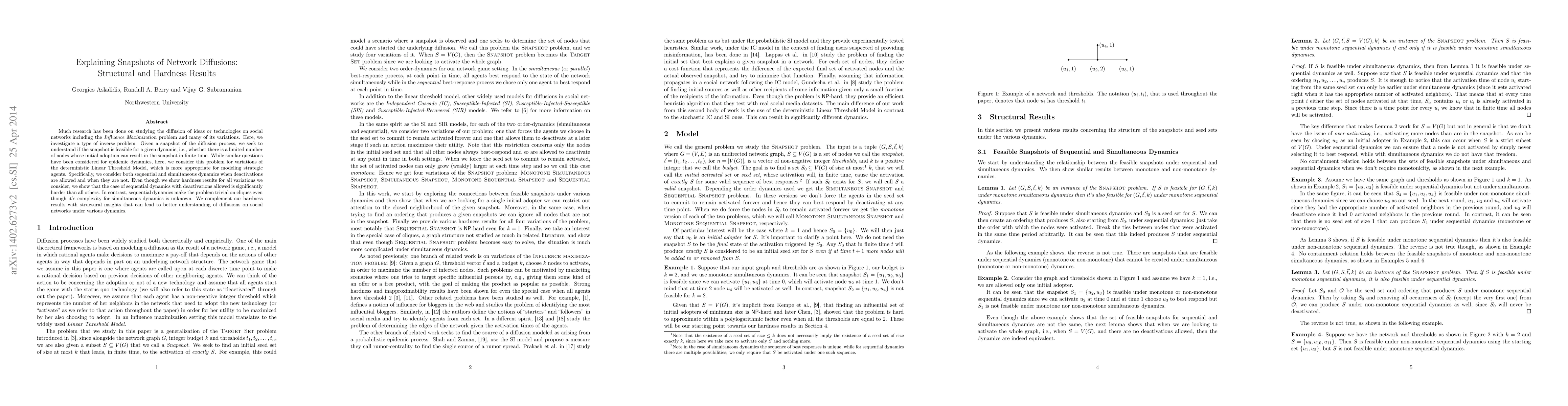 Much research has been done on studying the diffusion of ideas or technologies on social networks including the \textit{Influence Maximization} problem and many of its variations. Here, we investigate a type of inverse problem. Given a snapshot of the diffusion process, we seek to understand if the snapshot is feasible for a given dynamic, i.e., whether there is a limited number of nodes whose initial adoption can result in the snapshot in finite time. While similar questions have been considered for epidemic dynamics, here, we consider this problem for variations of the deterministic Linear Threshold Model, which is more appropriate for modeling strategic agents. Specifically, we consider both sequential and simultaneous dynamics when deactivations are allowed and when they are not. Even though we show hardness results for all variations we consider, we show that the case of sequential dynamics with deactivations allowed is significantly harder than all others. In contrast, sequential dynamics make the problem trivial on cliques even though it's complexity for simultaneous dynamics is unknown. We complement our hardness results with structural insights that can help better understand diffusions of social networks under various dynamics.