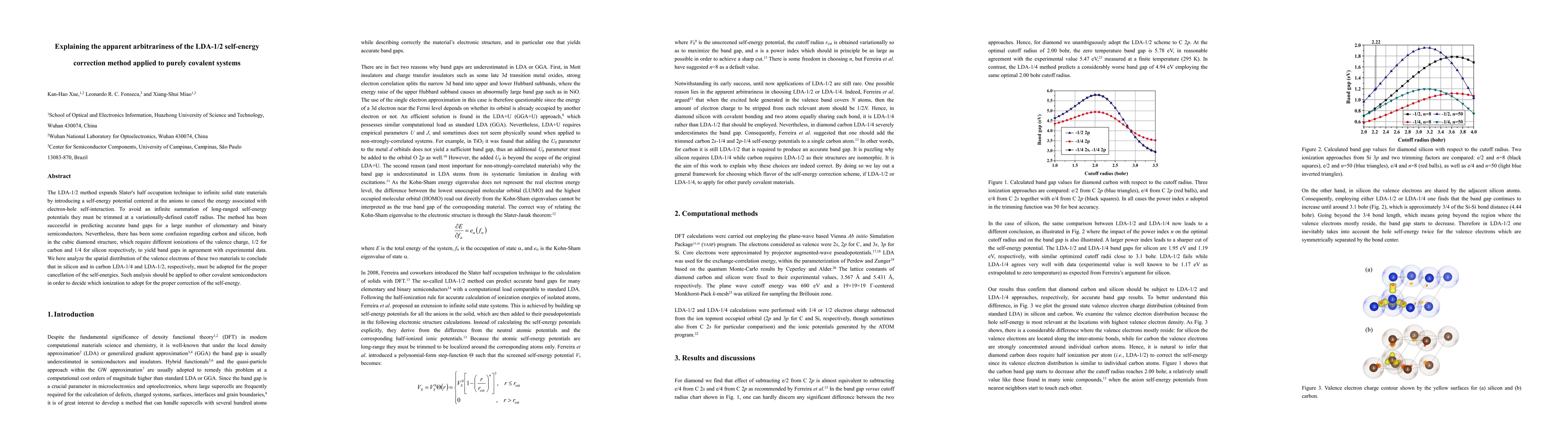 The LDA-1/2 method expands Slater's half occupation technique to infinite solid state materials by introducing a self-energy potential centered at the anions to cancel the energy associated with electron-hole self-interaction. To avoid an infinite summation of long-ranged self-energy potentials they must be trimmed at a variationally-defined cutoff radius. The method has been successful in predicting accurate band gaps for a large number of elementary and binary semiconductors. Nevertheless, there has been some confusion regarding carbon and silicon, both in the cubic diamond structure, which require different ionizations of the valence charge, 1/2 for carbon and 1/4 for silicon respectively, to yield band gaps in agreement with experimental data. We here analyze the spatial distribution of the valence electrons of these two materials to conclude that in silicon and in carbon LDA-1/4 and LDA-1/2, respectively, must be adopted for the proper cancellation of the self-energies. Such analysis should be applied to other covalent semiconductors in order to decide which ionization to adopt for the proper correction of the self-energy.