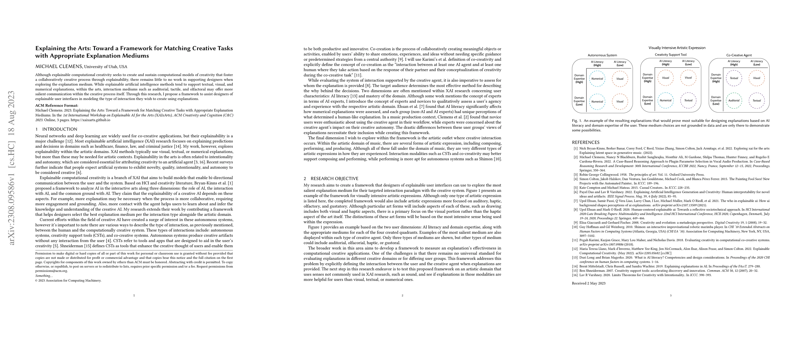 Although explainable computational creativity seeks to create and sustain computational models of creativity that foster a collaboratively creative process through explainability, there remains little to no work in supporting designers when exploring the explanation medium. While explainable artificial intelligence methods tend to support textual, visual, and numerical explanations, within the arts, interaction mediums such as auditorial, tactile, and olfactoral may offer more salient communication within the creative process itself. Through this research, I propose a framework to assist designers of explainable user interfaces in modeling the type of interaction they wish to create using explanations.