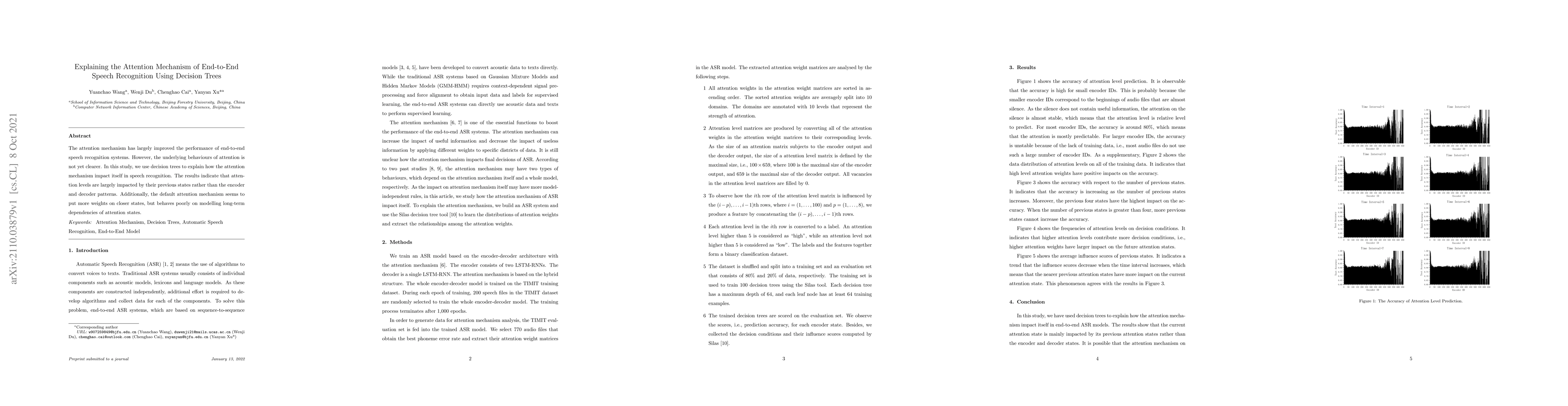 The paper presents a novel approach using decision trees to analyze and explain the attention mechanism in end-to-end speech recognition systems.