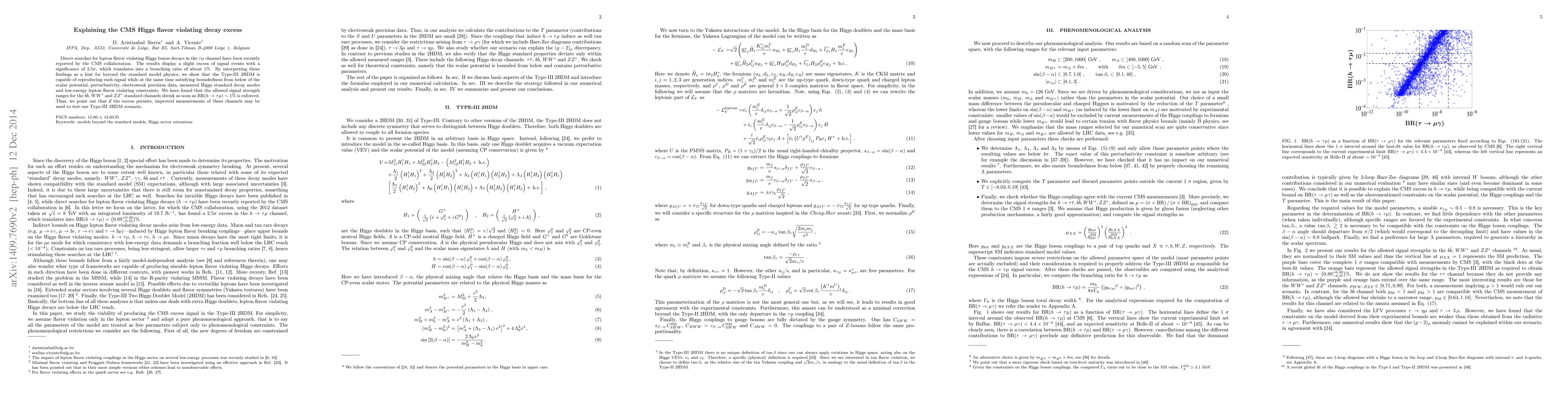 A recent study found a 2.5sigma excess in Higgs boson decays to tau-mu pairs, which may hint at beyond the Standard Model physics. The researchers suggest that this excess could be explained by a specific Type-III 2HDM scenario that satisfies various constraints and precision data.