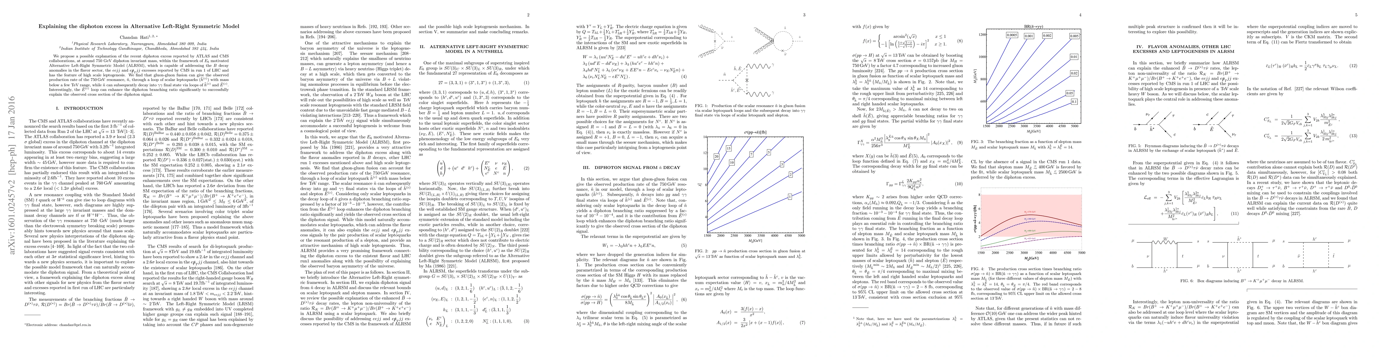 We propose a possible explanation of the recent diphoton excess reported by ATLAS and CMS collaborations, at around 750 GeV diphoton invariant mass, within the framework of $E_{6}$ motivated Alternative Left-Right Symmetric Model (ALRSM), which is capable of addressing the $B$ decay anomalies in the flavor sector, the $eejj$ and $e$ missing $p_{T}jj$ excesses reported by CMS in run 1 of LHC and has the feature of high scale leptogenesis. We find that gluon-gluon fusion can give the observed production rate of the 750 GeV resonance, $\tilde{n}$, through a loop of scalar leptoquarks ($\tilde{h}^{(c)}$) with mass below a few TeV range, while $\tilde{n}$ can subsequently decay into $\gamma\gamma$ final state via loops of $\tilde{h}^{(c)}$ and $\tilde{E}^{(c)}$. Interestingly, the $\tilde{E}^{(c)}$ loop can enhance the diphoton branching ratio significantly to successfully explain the observed cross section of the diphoton signal.
