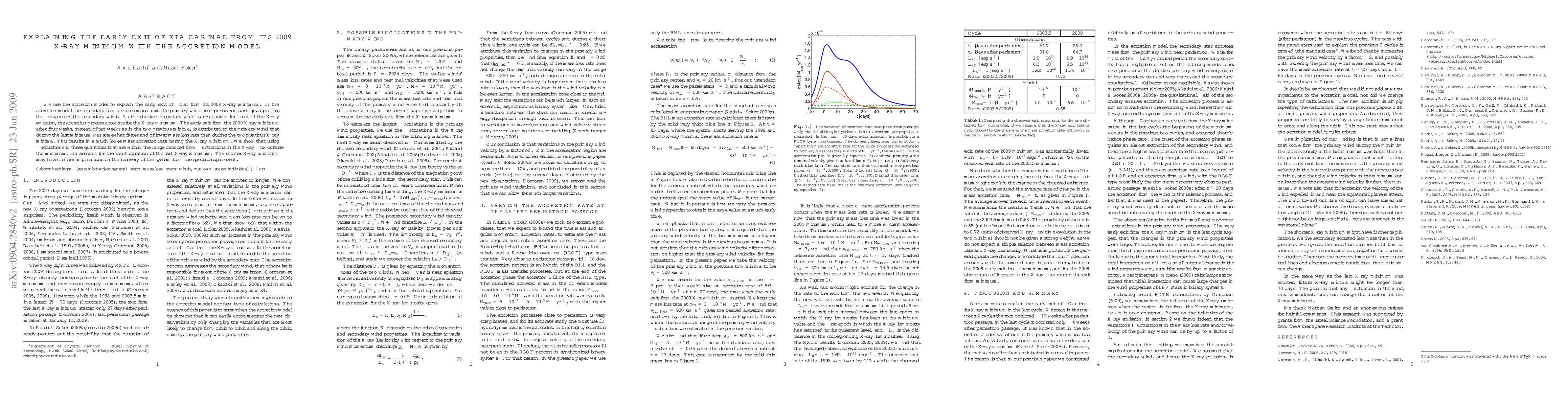 Researchers used an accretion model to explain Eta Carinae's early exit from its 2009 X-ray minimum, attributing it to a faster primary wind and lower mass loss rate, resulting in reduced mass accretion during the minimum. The findings suggest that fluctuations within normal ranges can account for the shorter duration of this X-ray minimum.