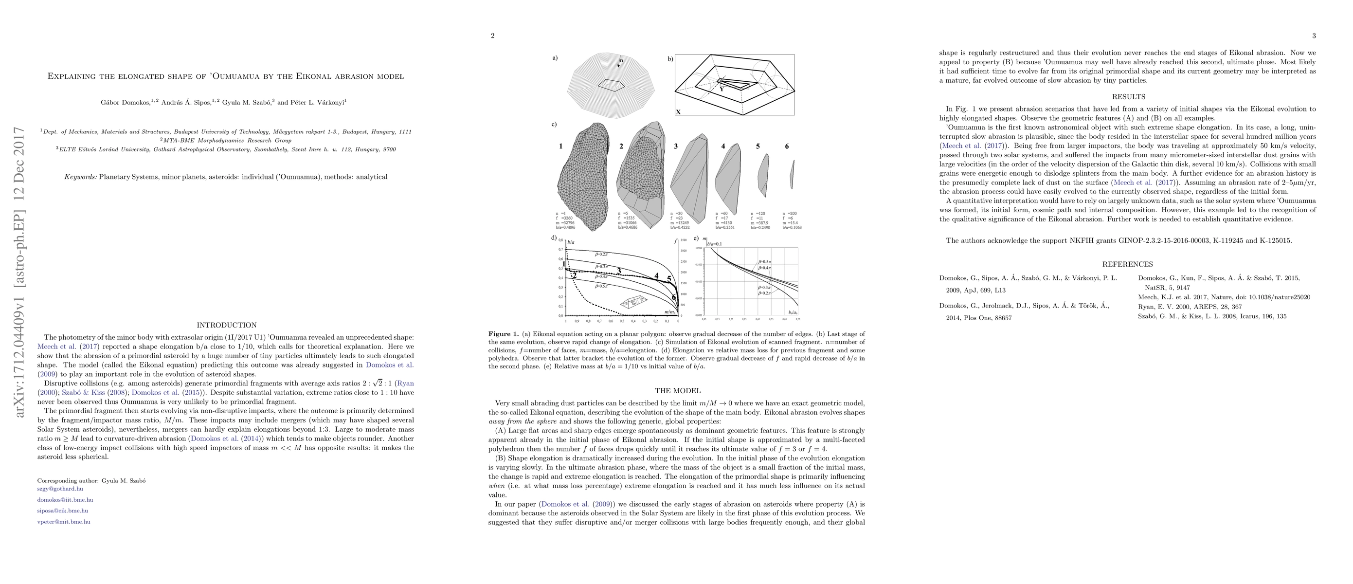 The photometry of the minor body with extrasolar origin (1I/2017 U1) 'Oumuamua revealed an unprecedented shape: Meech et al. (2017) reported a shape elongation b/a close to 1/10, which calls for theoretical explanation. Here we show that the abrasion of a primordial asteroid by a huge number of tiny particles ultimately leads to such elongated shape. The model (called the Eikonal equation) predicting this outcome was already suggested in Domokos et al. (2009) to play an important role in the evolution of asteroid shapes.