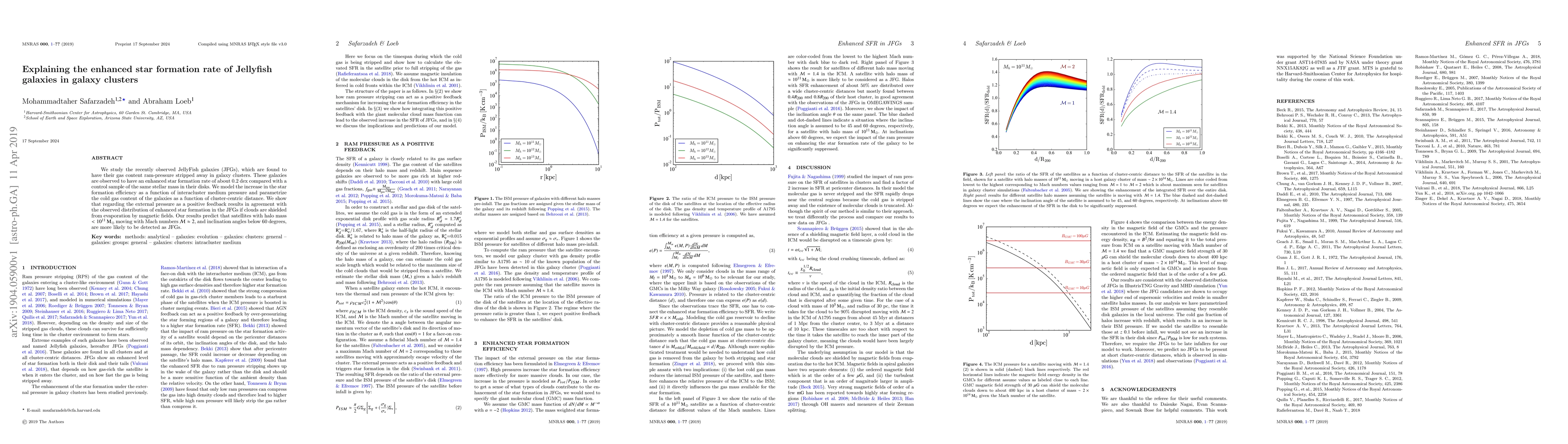 This study investigates the enhanced star formation in Jellyfish galaxies, attributing it to the ram-pressure stripping of gas in galaxy clusters, which increases star formation efficiency. The findings suggest that magnetic field shielding of gas clouds from evaporation drives this phenomenon, predicting specific satellite properties for detection as Jellyfish galaxies.
