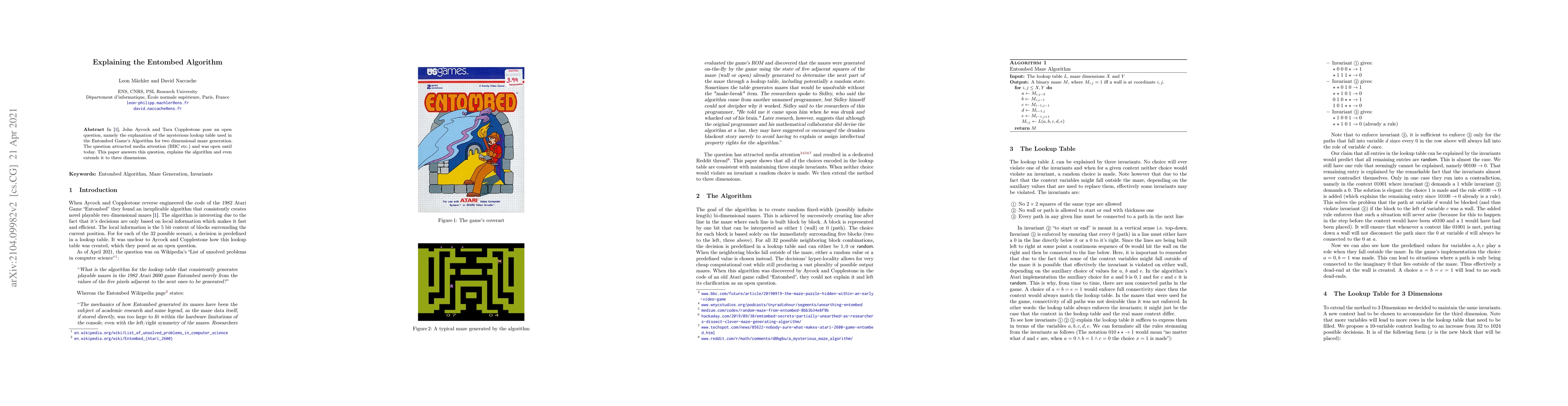 In \cite{entombed}, John Aycock and Tara Copplestone pose an open question, namely the explanation of the mysterious lookup table used in the Entombed Game's Algorithm for two dimensional maze generation. The question attracted media attention (BBC etc) and was open until today. This paper answers this question, explains the algorithm and even extends it to three dimensions.