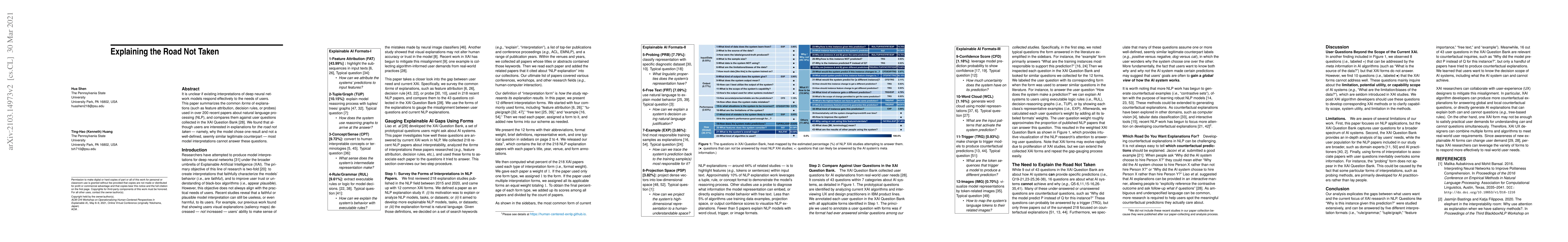 It is unclear if existing interpretations of deep neural network models respond effectively to the needs of users. This paper summarizes the common forms of explanations (such as feature attribution, decision rules, or probes) used in over 200 recent papers about natural language processing (NLP), and compares them against user questions collected in the XAI Question Bank. We found that although users are interested in explanations for the road not taken -- namely, why the model chose one result and not a well-defined, seemly similar legitimate counterpart -- most model interpretations cannot answer these questions.