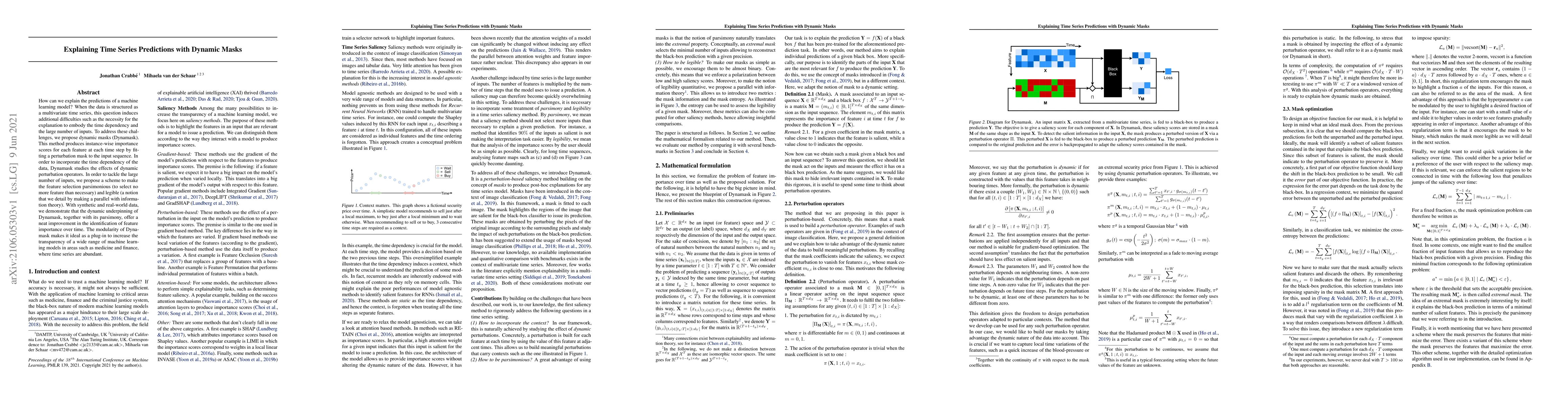 A new method called Dynamask explains how machine learning models make predictions on time series data by assigning importance scores to each feature at each time step. This approach improves the identification of feature importance over time and increases transparency in various fields.