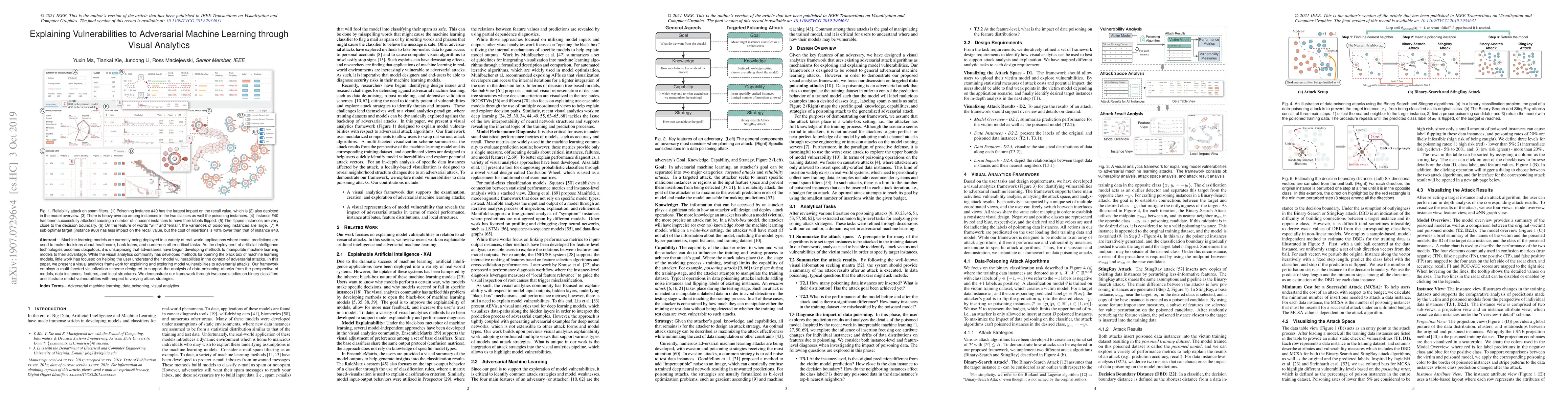 This paper introduces a visual analytics framework for understanding machine learning model vulnerabilities to adversarial attacks, employing multi-faceted visualizations to analyze data poisoning attacks from various perspectives. The framework is demonstrated through case studies on binary classifiers, highlighting model vulnerabilities under different attack strategies.