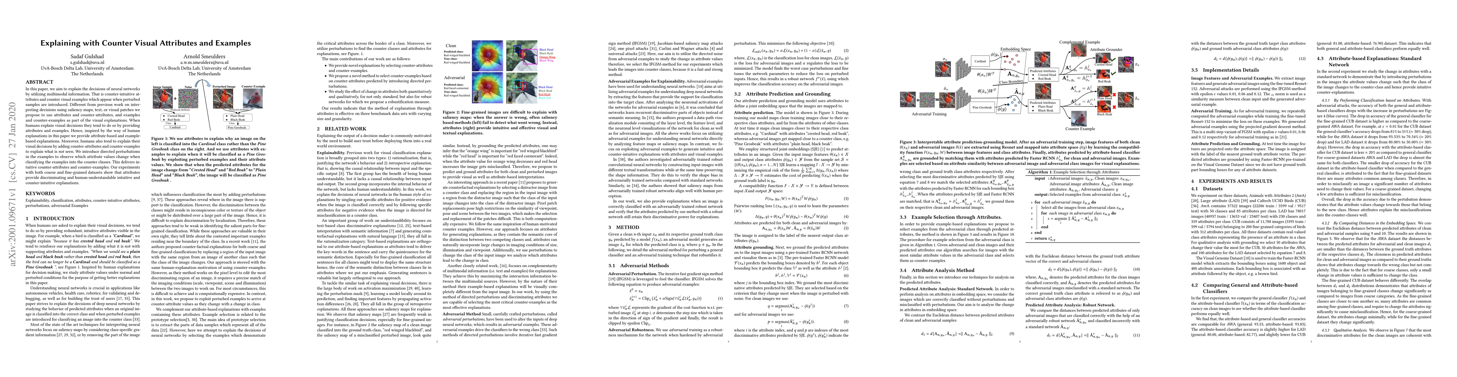 In this paper, we aim to explain the decisions of neural networks by utilizing multimodal information. That is counter-intuitive attributes and counter visual examples which appear when perturbed samples are introduced. Different from previous work on interpreting decisions using saliency maps, text, or visual patches we propose to use attributes and counter-attributes, and examples and counter-examples as part of the visual explanations. When humans explain visual decisions they tend to do so by providing attributes and examples. Hence, inspired by the way of human explanations in this paper we provide attribute-based and example-based explanations. Moreover, humans also tend to explain their visual decisions by adding counter-attributes and counter-examples to explain what is not seen. We introduce directed perturbations in the examples to observe which attribute values change when classifying the examples into the counter classes. This delivers intuitive counter-attributes and counter-examples. Our experiments with both coarse and fine-grained datasets show that attributes provide discriminating and human-understandable intuitive and counter-intuitive explanations.